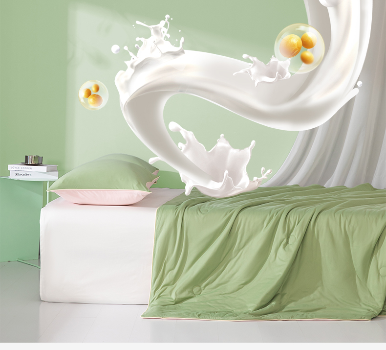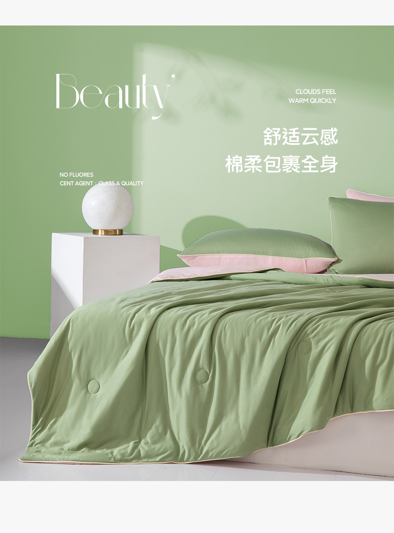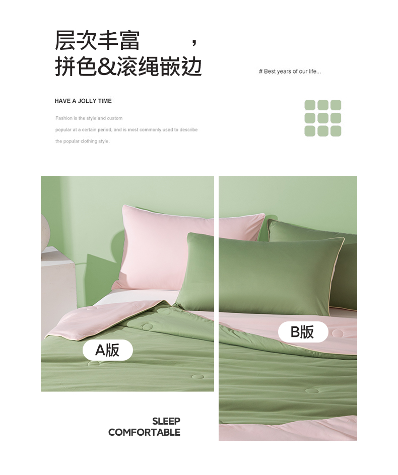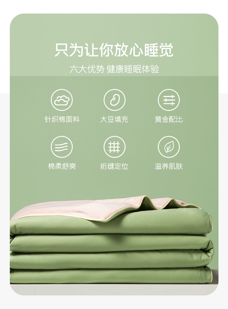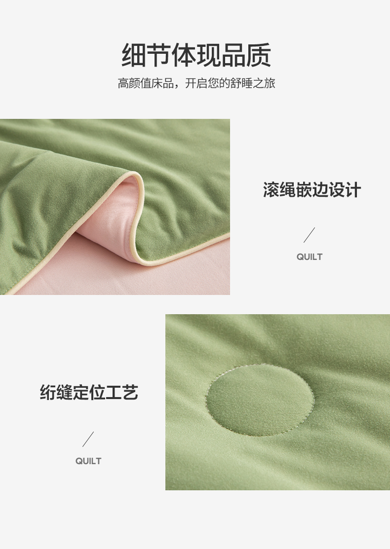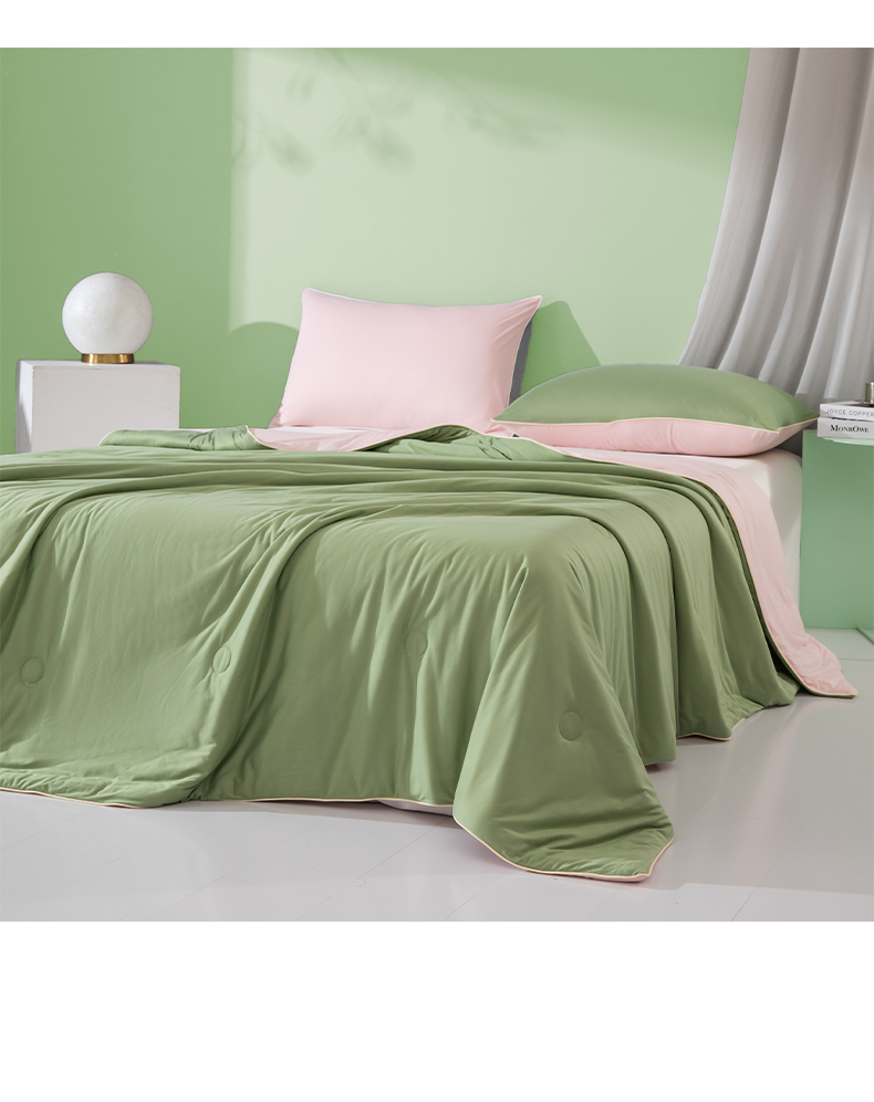 商品名称:吾诺家居 2024新款针织棉双拼色大豆夏被 豆绿-浅粉