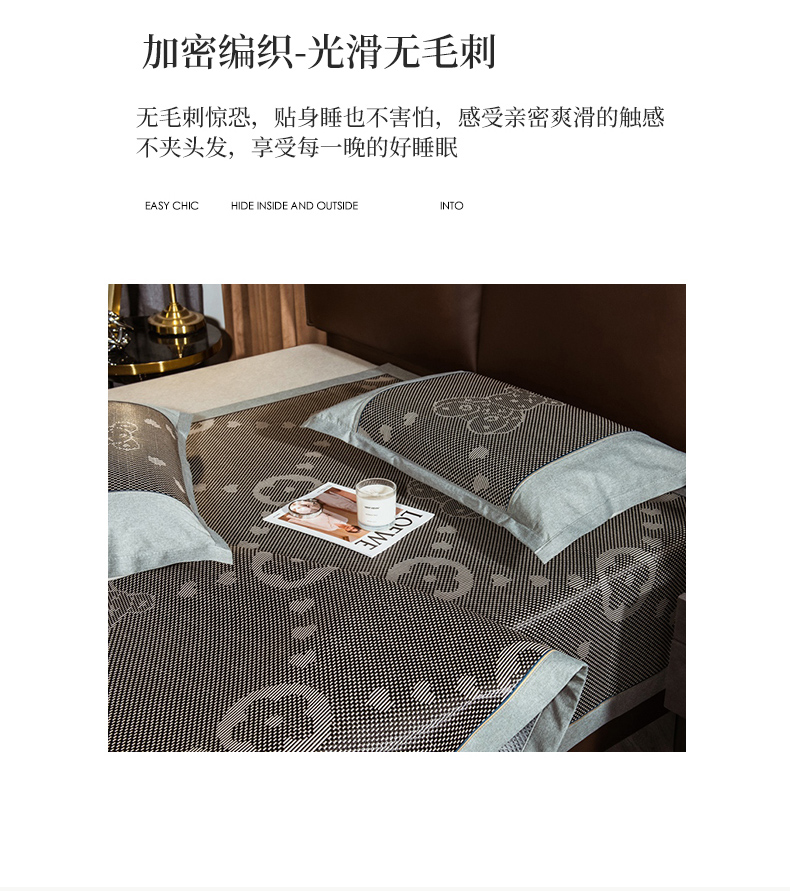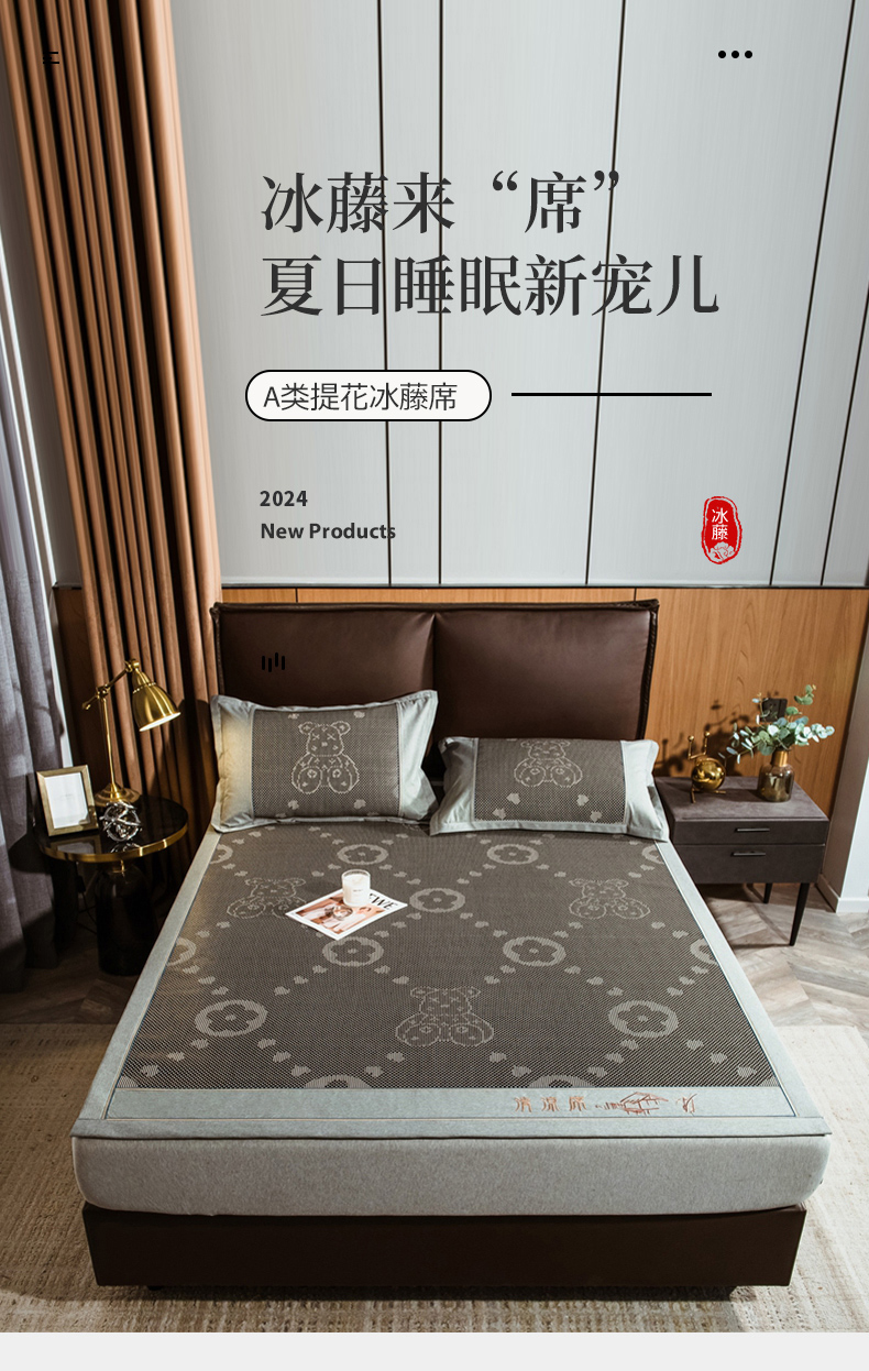 当前位置: 91家纺网 > 商品网购 > 床上用品 > 凉席 > 其他凉席 > 全季家居 2024新款加厚加密宽边刺绣提花冰藤凉席 呆呆熊-灰色(床席款)