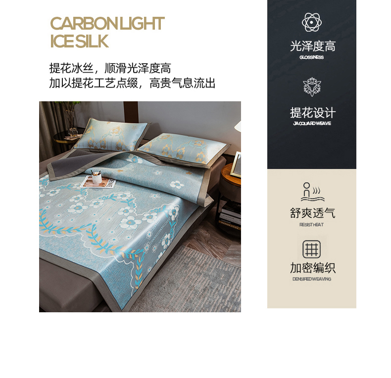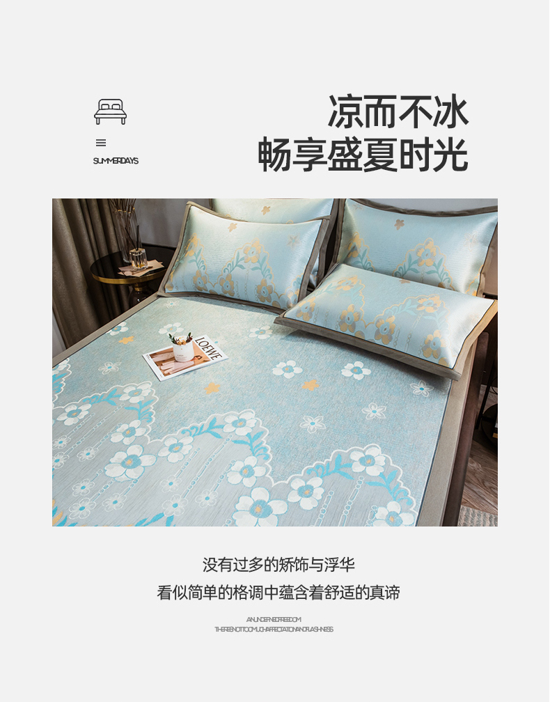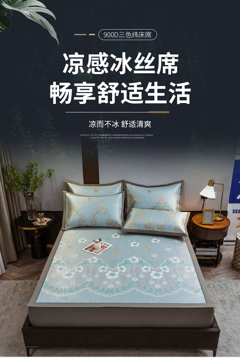 当前位置: 91家纺网 > 商品网购 > 床上用品 > 凉席 > 冰丝席 > 全季家居 2024新款900D高精密三色纬提花冰丝凉席 静谧之夏(床席款)