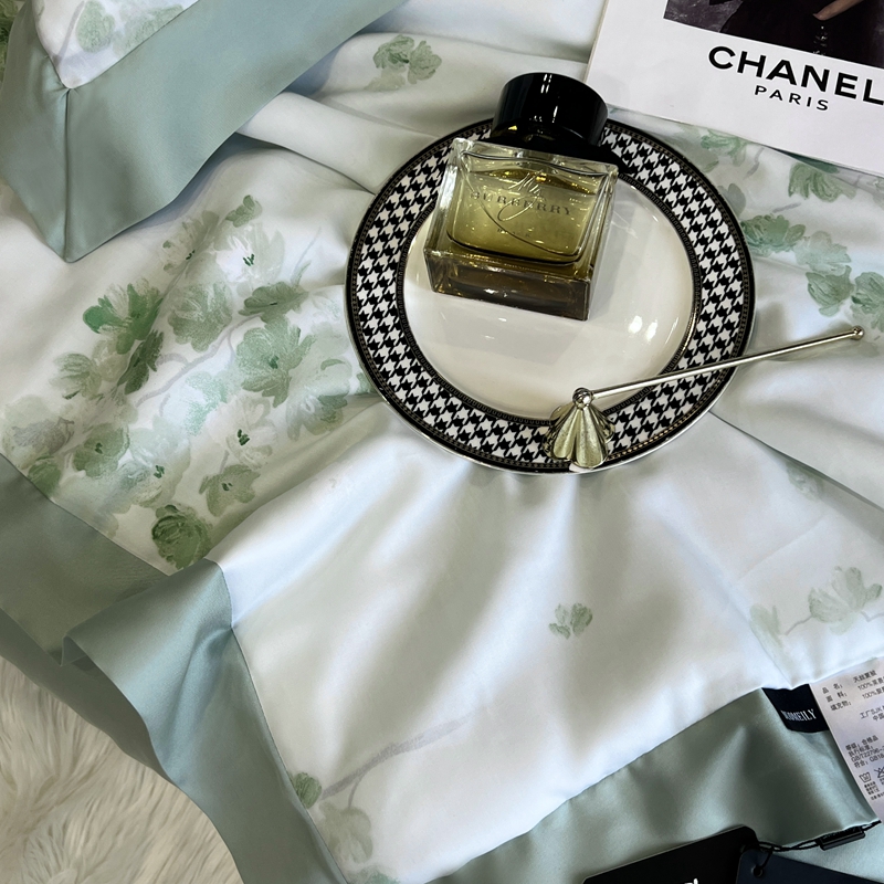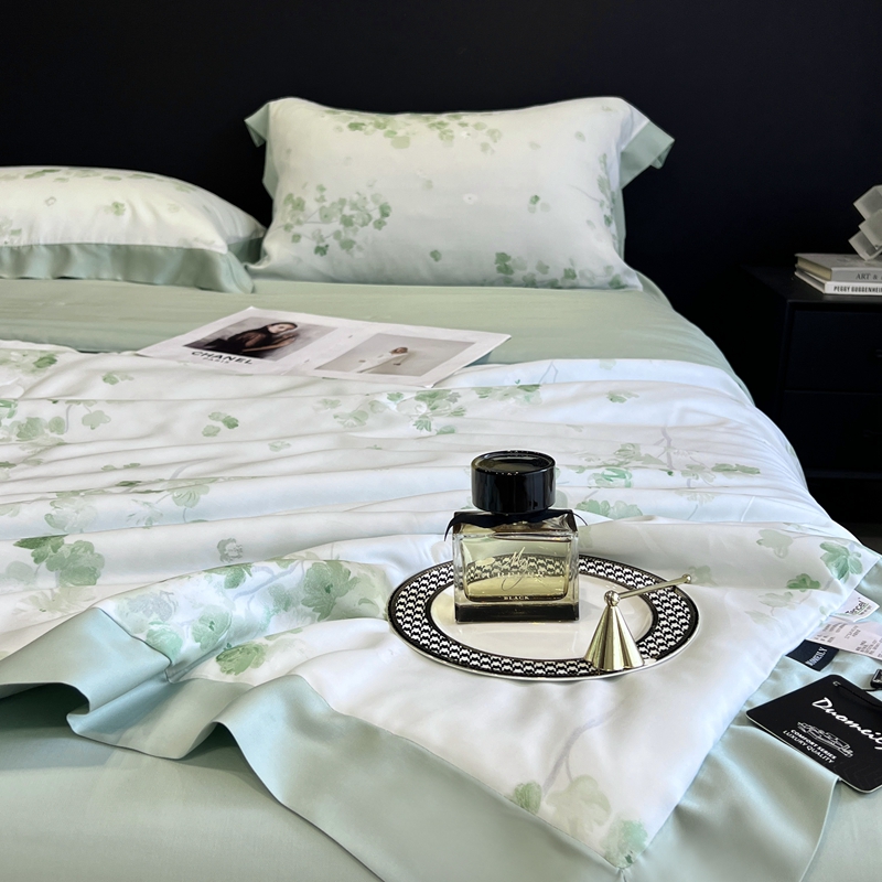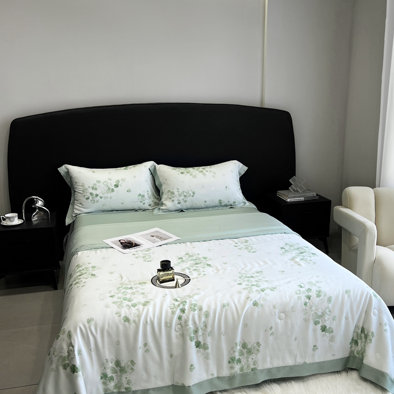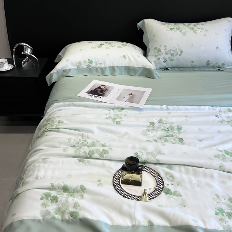 商品名称:南通朵美纺织品有限公司 2024新款50支天丝印花单夏被 武陵春(绿)