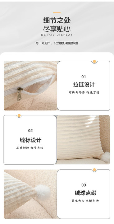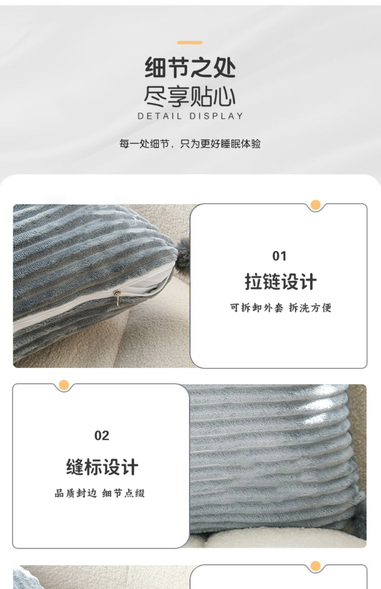 (总)碧尔家居 2025新款简约猫长条机械钉扣水洗棉床头靠枕,米黄,浅蓝,银灰