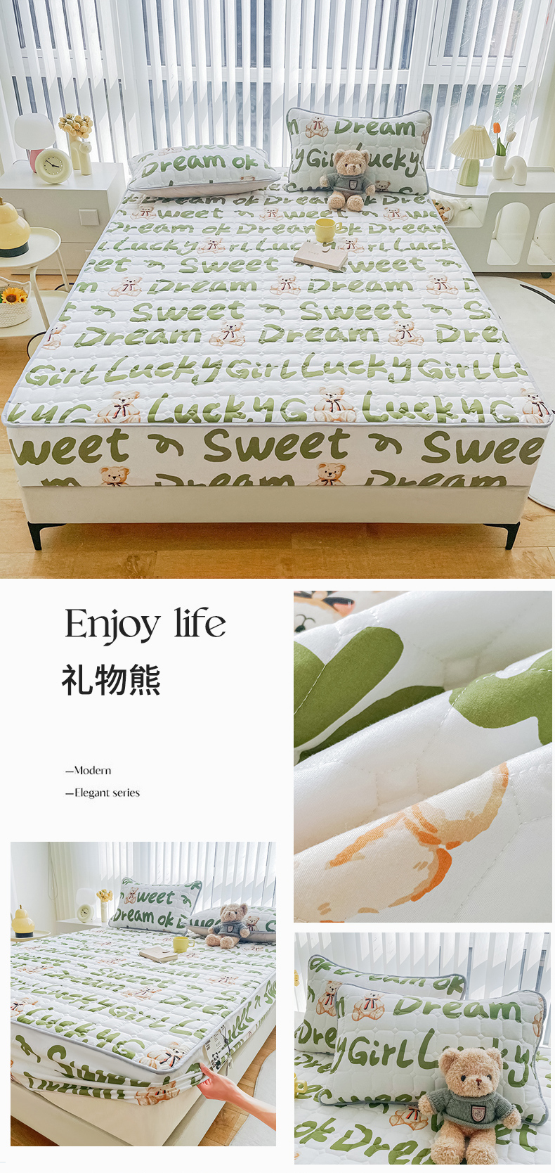 恒尚居 2024新款小清新印花水洗棉大豆夹棉床笠 礼物熊