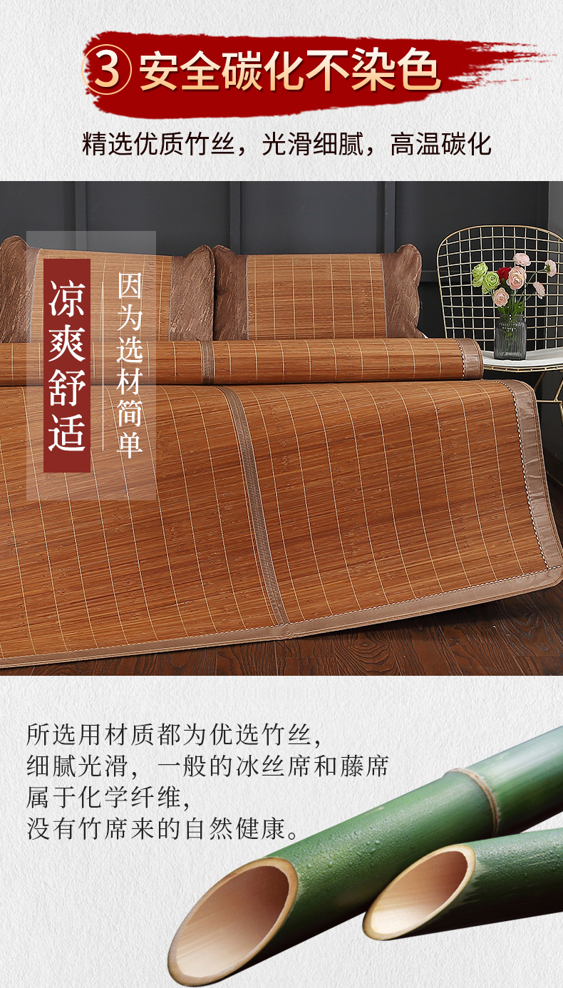 (总)新月家纺 2022新款凉席4.0碳化竹席 学生宿舍席子,4.0碳化席