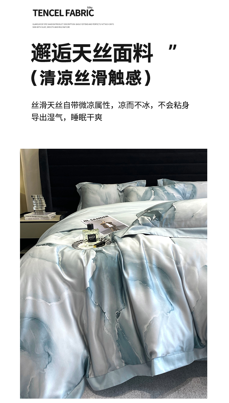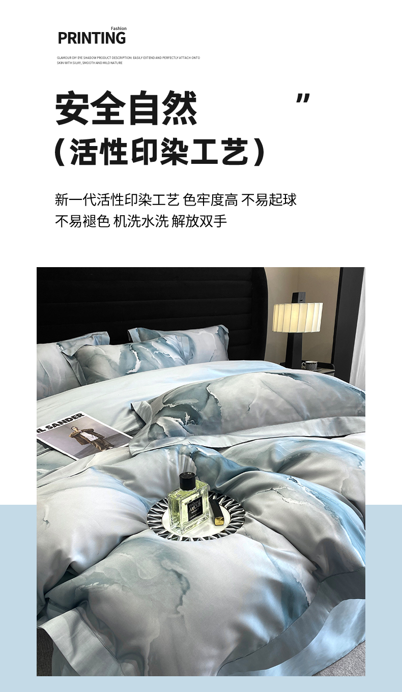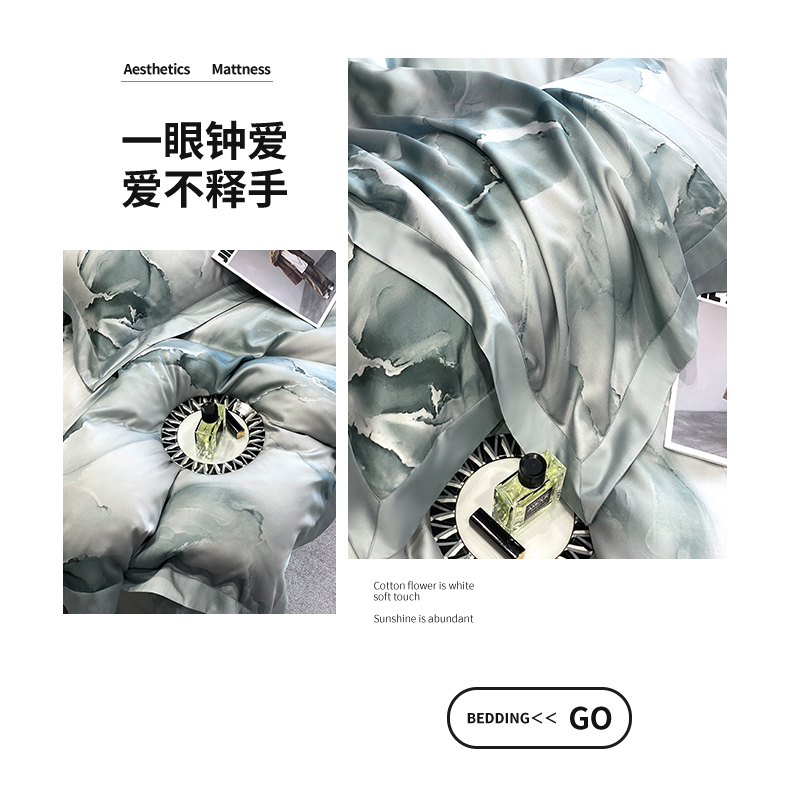 (总)优悦 2023新款水洗真丝轻奢印花款四件套,安格斯-黄,安格斯-灰,安格斯-绿,迪丽奥-灰,迪丽奥-蓝,迪丽奥-绿,浅浅叶语-灰,浅浅叶语-绿,森林物语-蓝,森林物语-绿,森绿物语-灰,云中-粉,云中-灰,云中-蓝,云中-绿