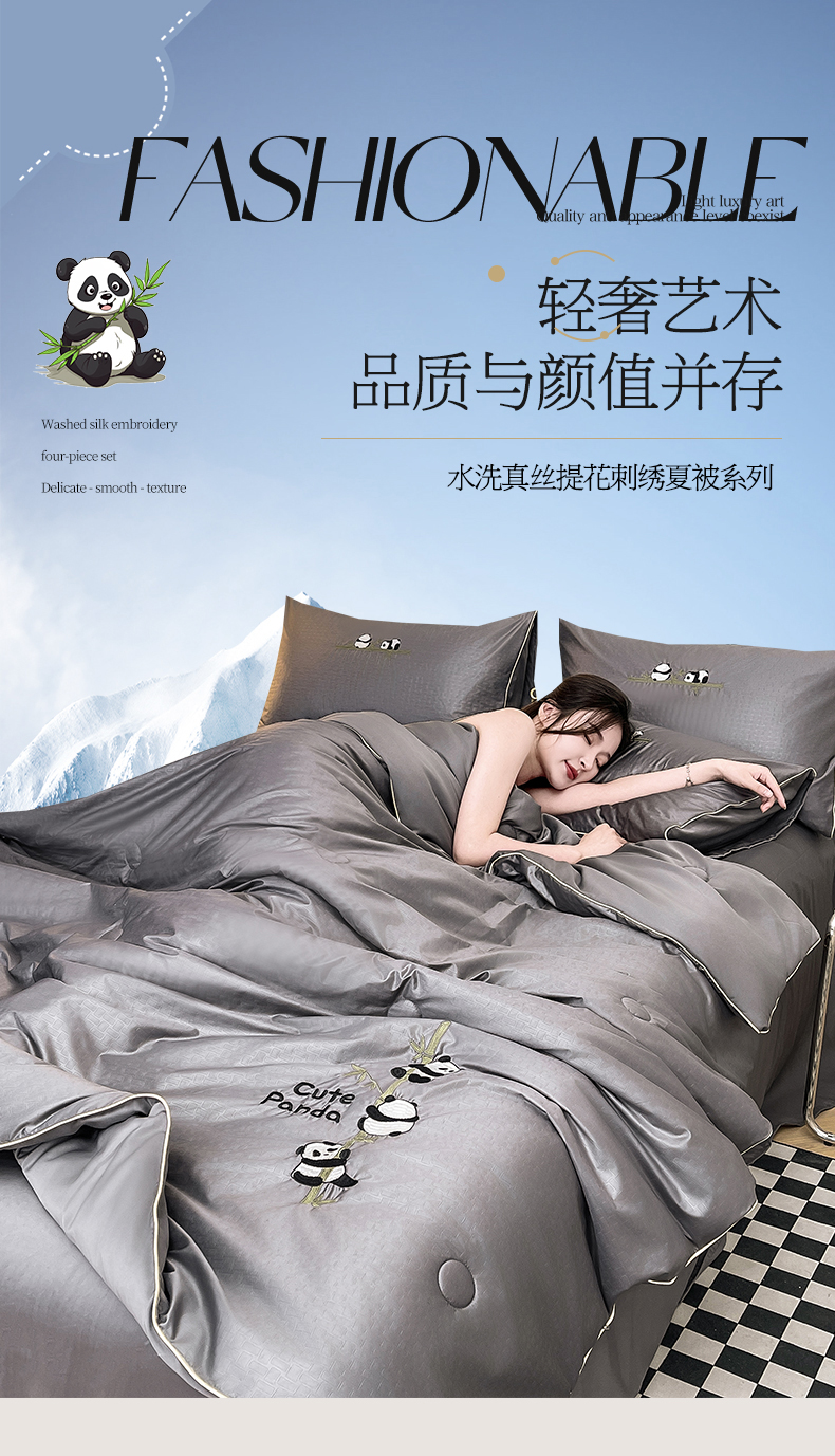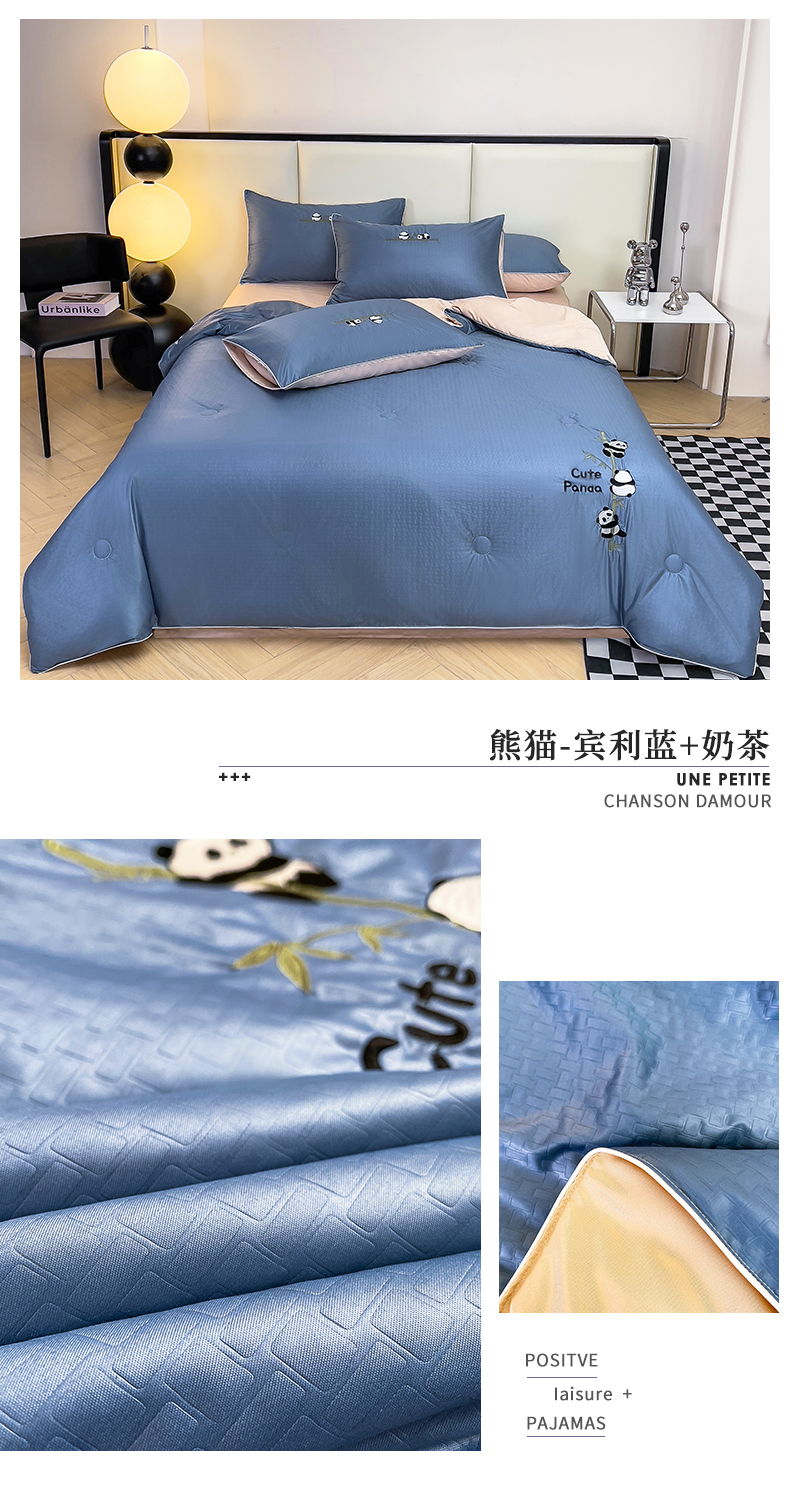 (总)古吉梦 2024新款水洗真丝提花夏被-熊猫,宾利蓝+奶茶,高级灰,海青+山灰,奶昔白+奶茶,浅豆沙+山灰,山灰+中灰,星空蓝