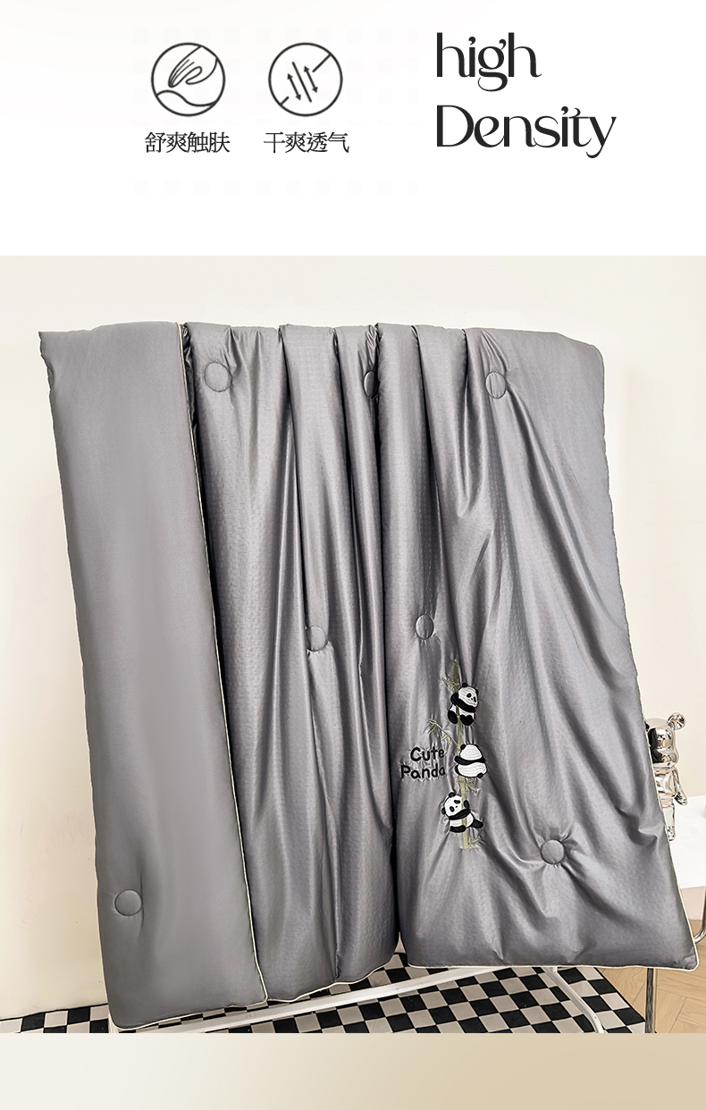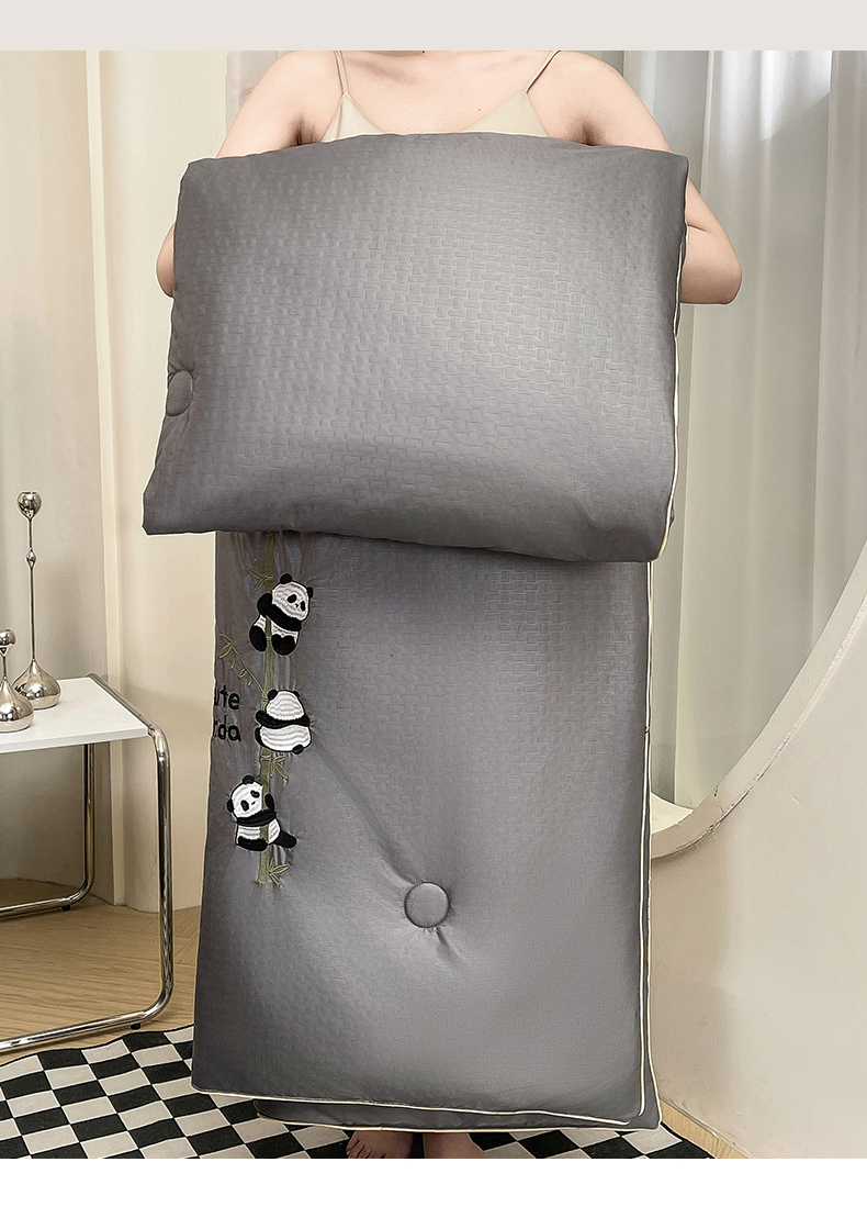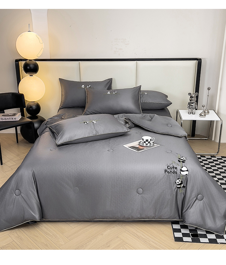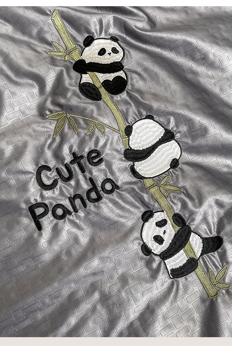 商品名称:古吉梦 2024新款水洗真丝提花夏被-熊猫 高级灰