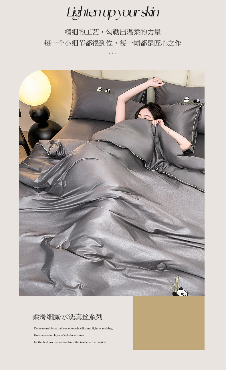 (总)古吉梦 2024新款水洗真丝提花四件套--熊猫,宾利蓝+奶茶,高级灰,海青+山灰,奶昔白+奶茶,浅豆沙+山灰,山灰+中灰,星空蓝