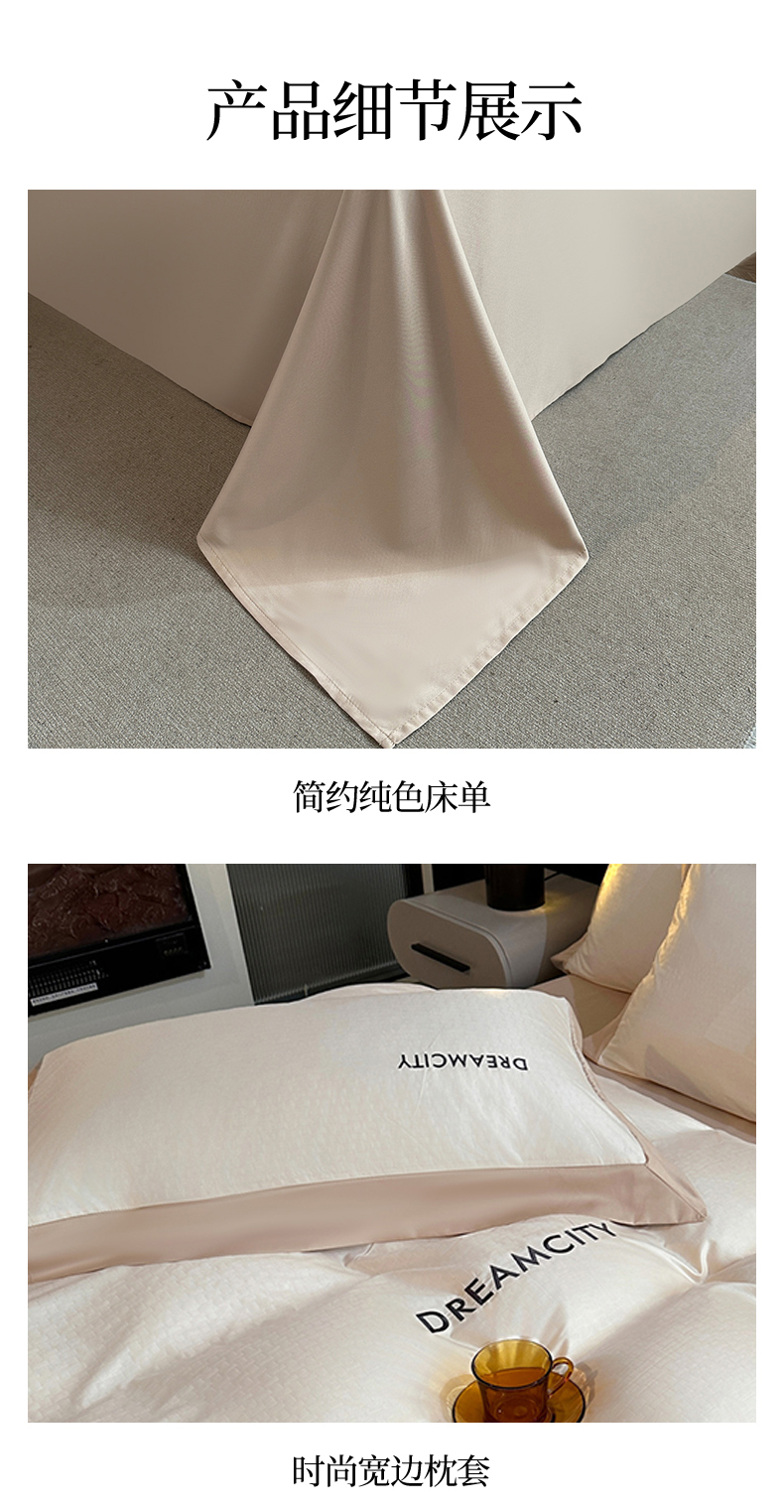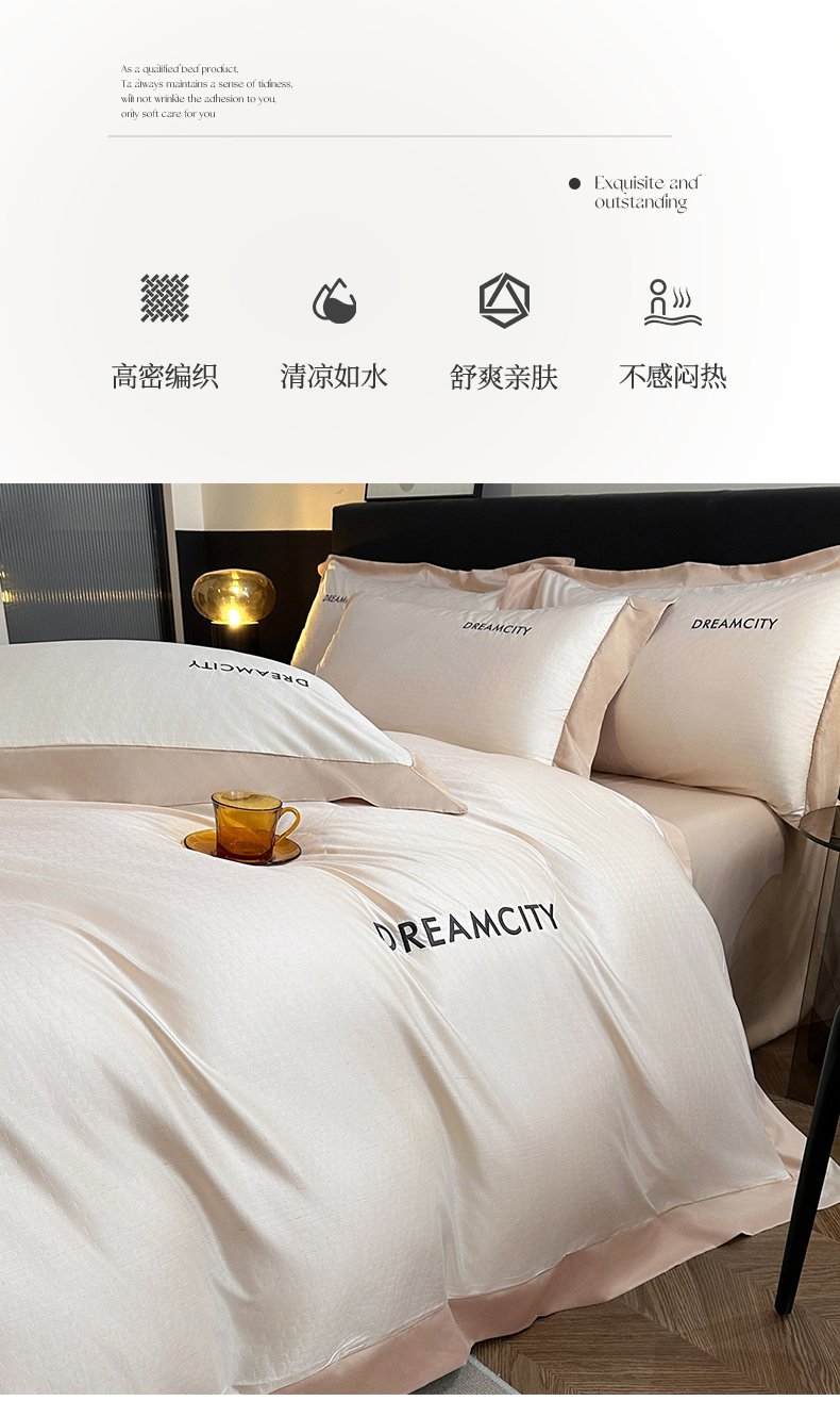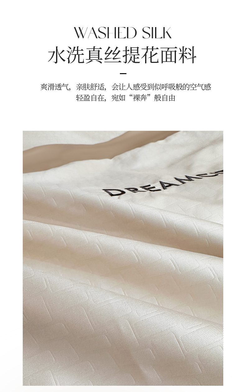 商品名称:古吉梦 2024新款水洗真丝提花四件套--迪梦 奶昔白+奶茶