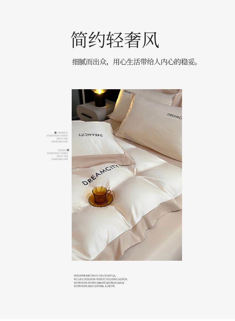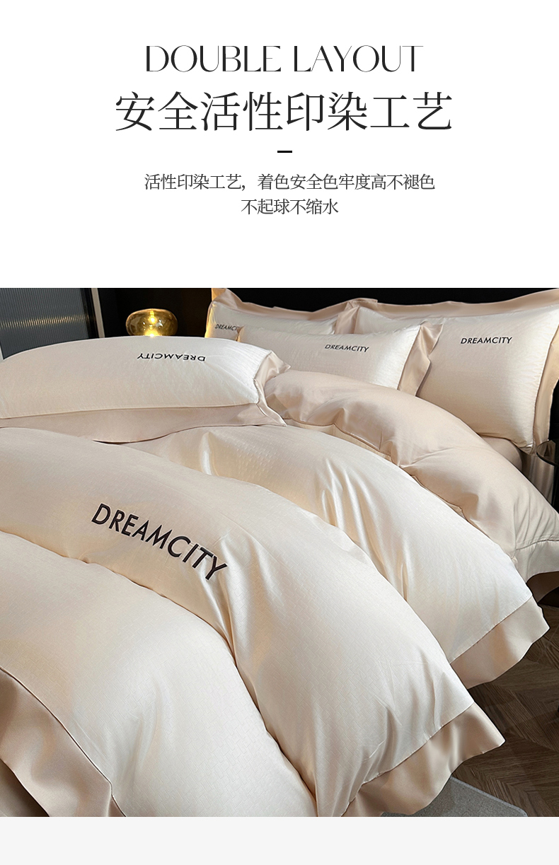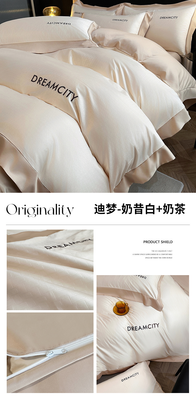 商品名称:古吉梦 2024新款水洗真丝提花四件套--迪梦 奶昔白+奶茶