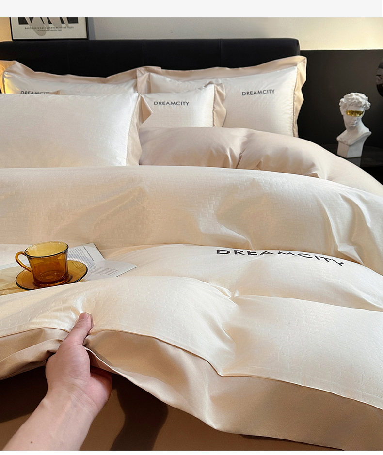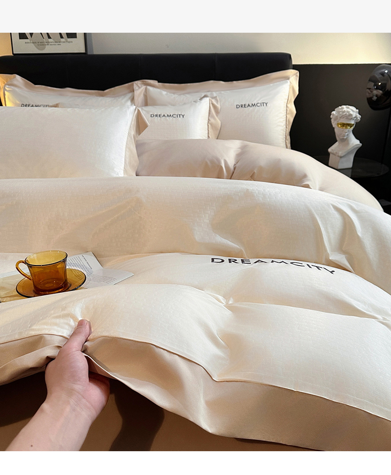 古吉梦 2024新款水洗真丝提花四件套--迪梦 奶昔白+奶茶