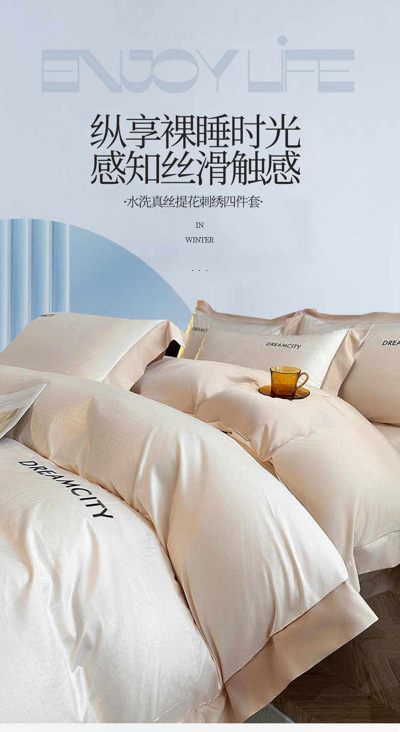 (总)古吉梦 2024新款水洗真丝提花四件套--迪梦 ,宾利蓝+山灰,豆沙+山灰,高级灰+奶茶,海青+山灰,奶昔白+奶茶,山灰+中灰,天空蓝+海青,星空蓝+山灰,中灰+山灰