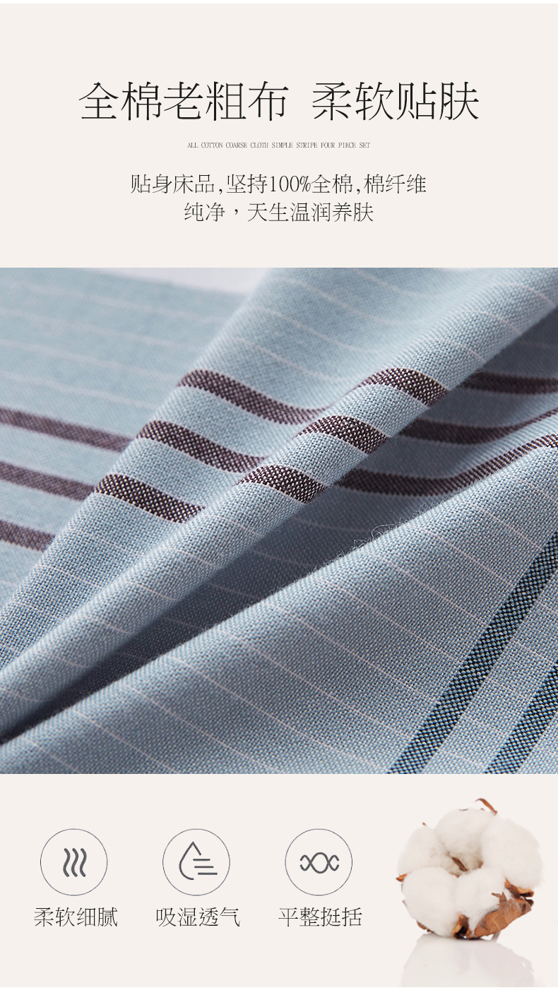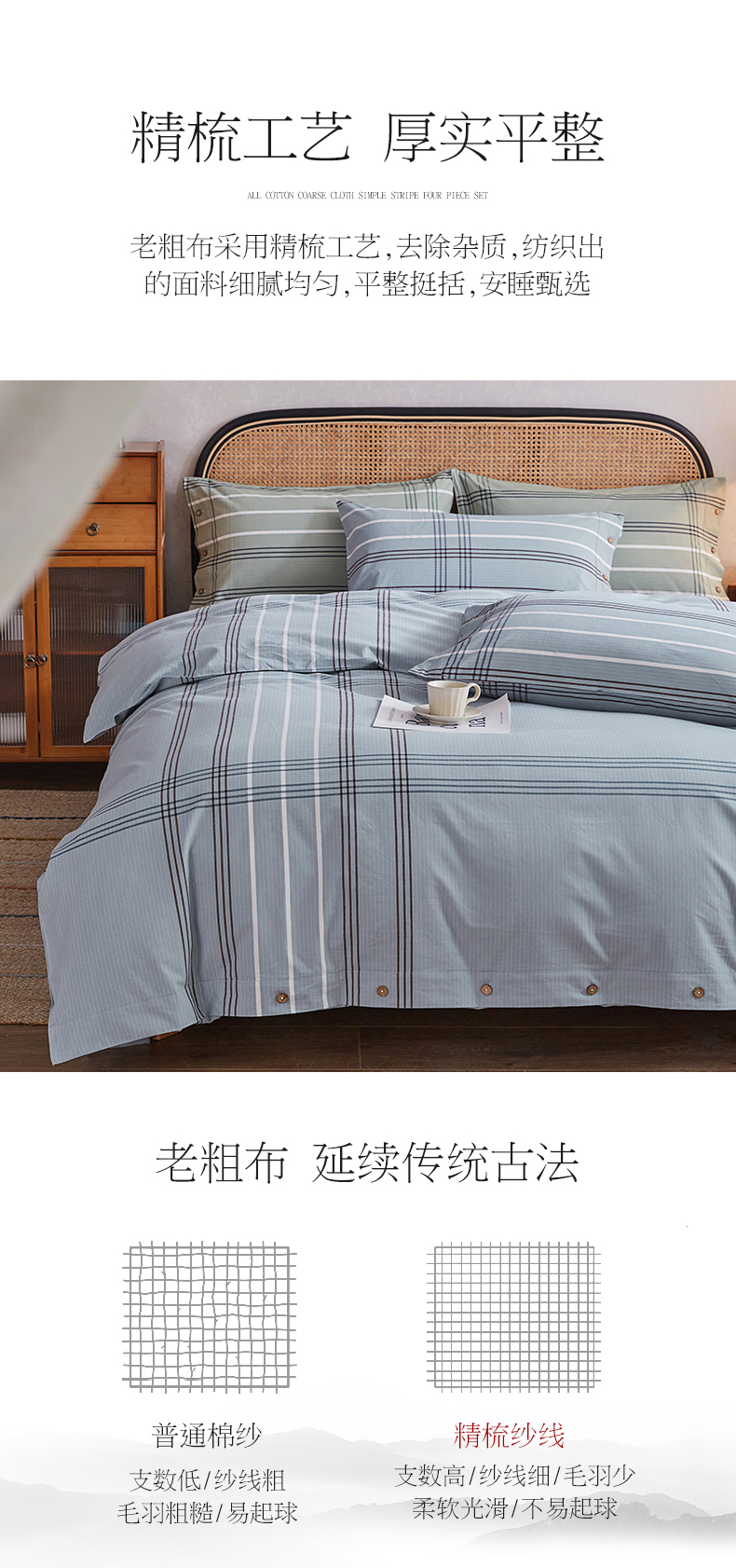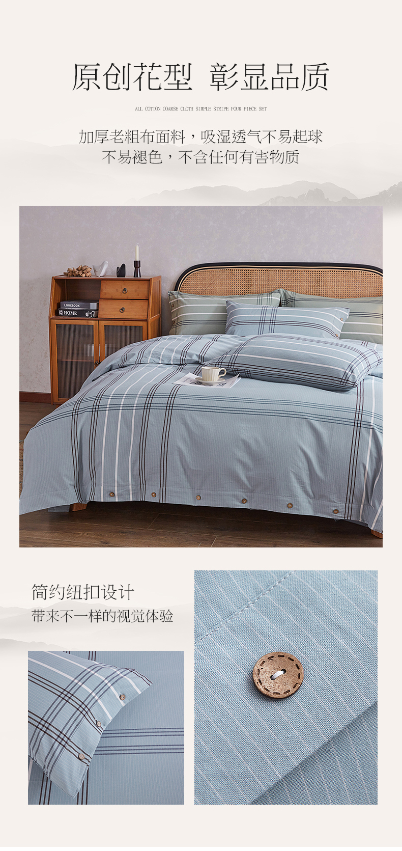 商品名称:金泰莱 2025新款32支精梳棉老粗布四件套全棉四件套纯棉四件套 大格-蓝