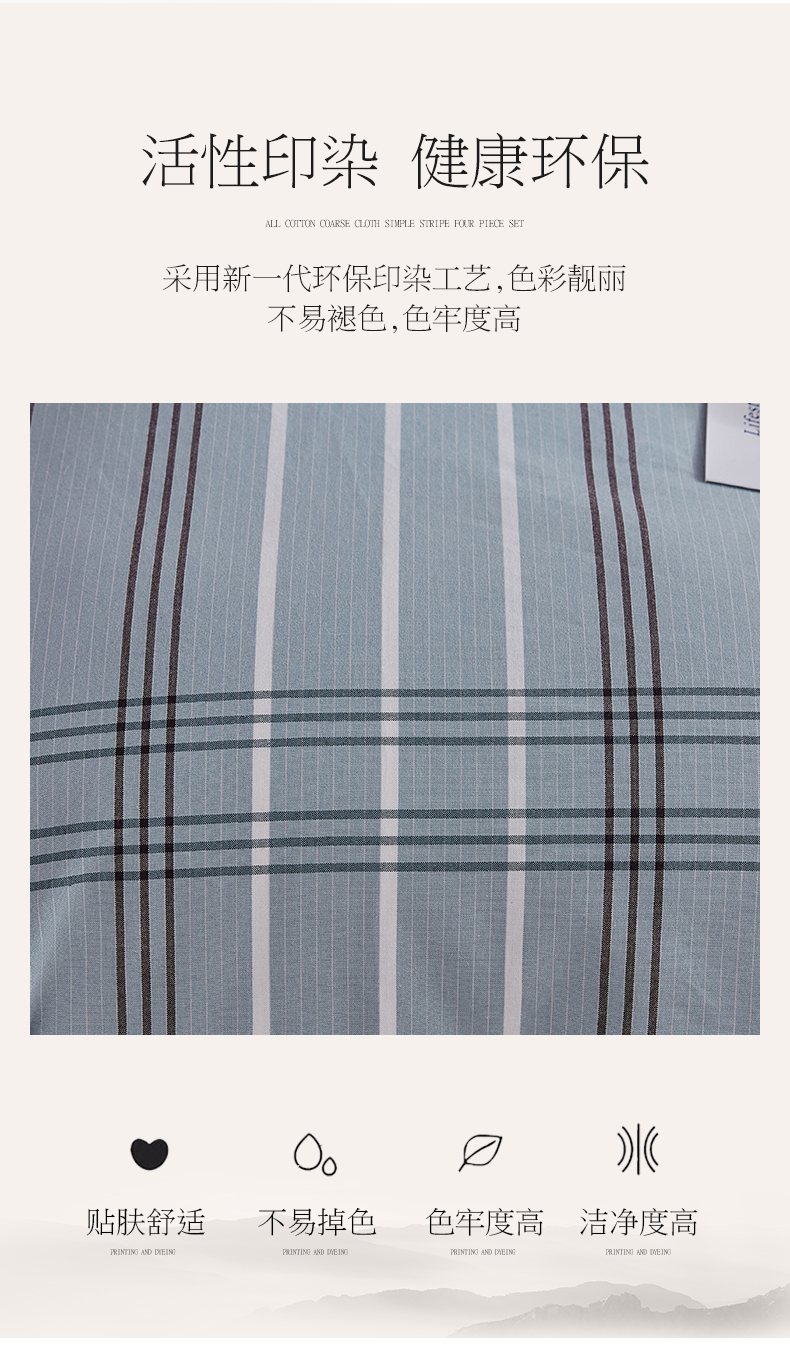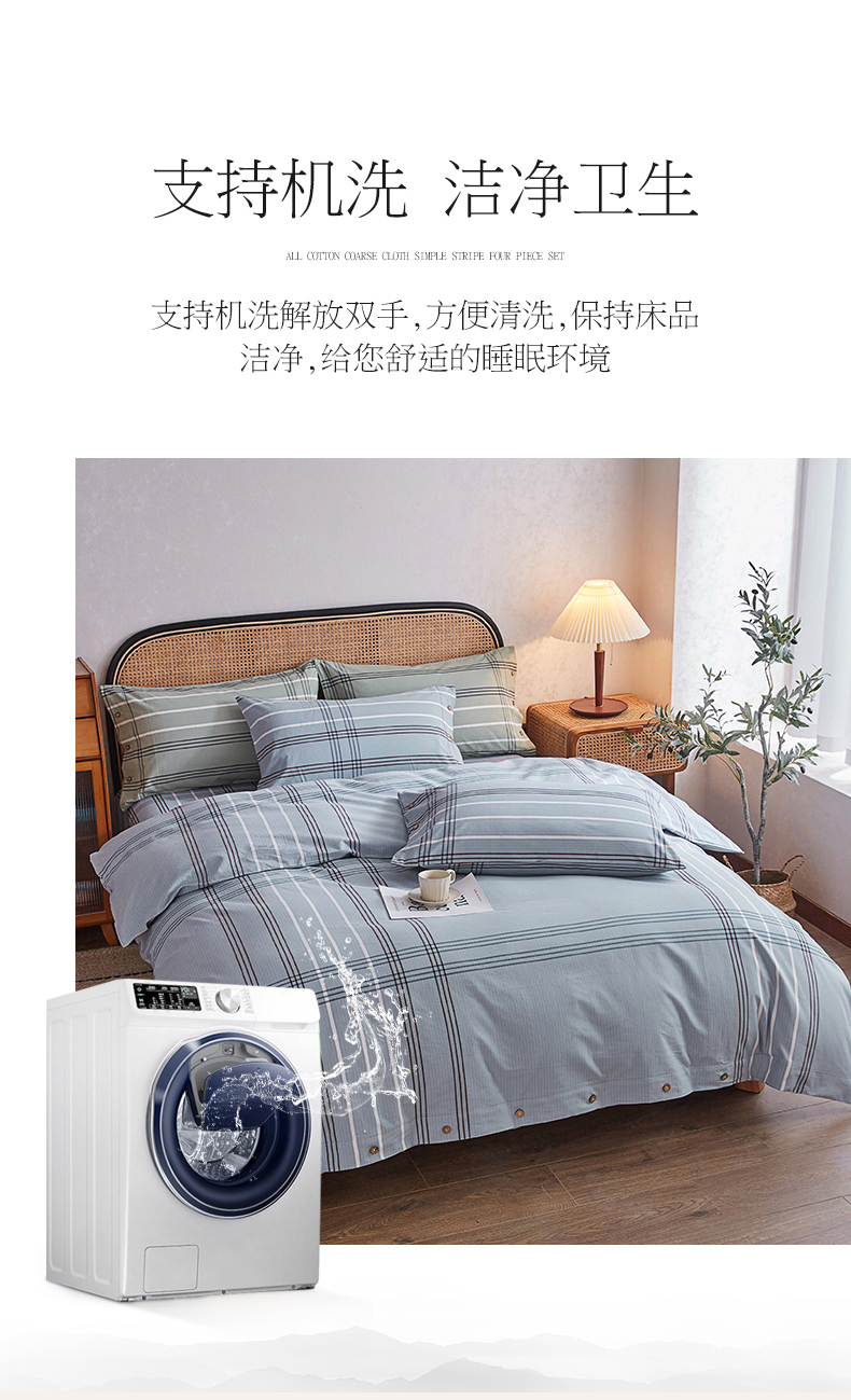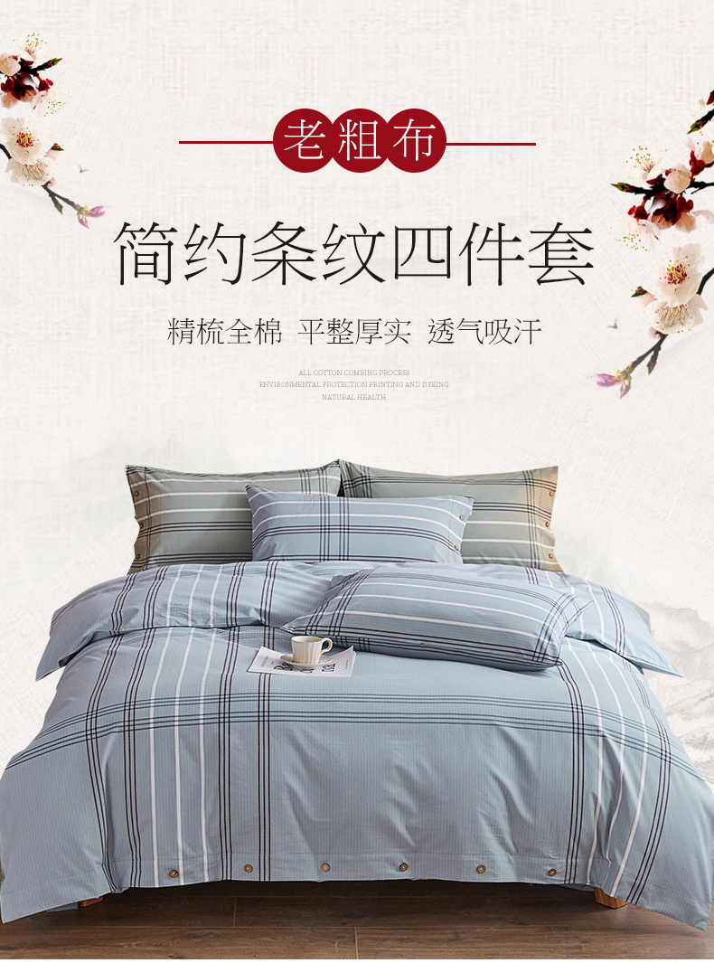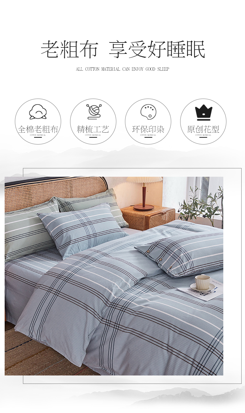 商品名称:金泰莱 2025新款32支精梳棉老粗布四件套全棉四件套纯棉四件套 大格-蓝