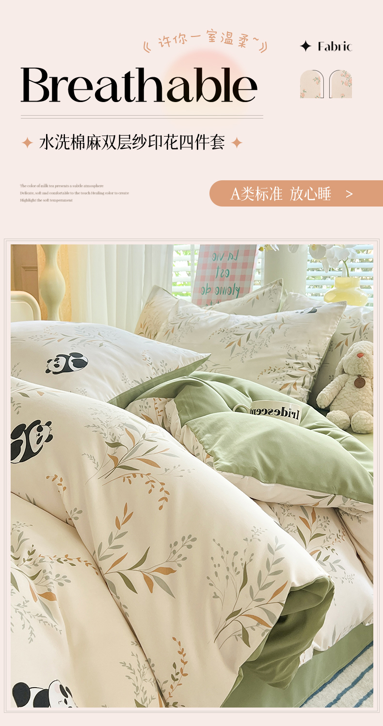 (总)多品 2024新款水洗棉双层纱四件套