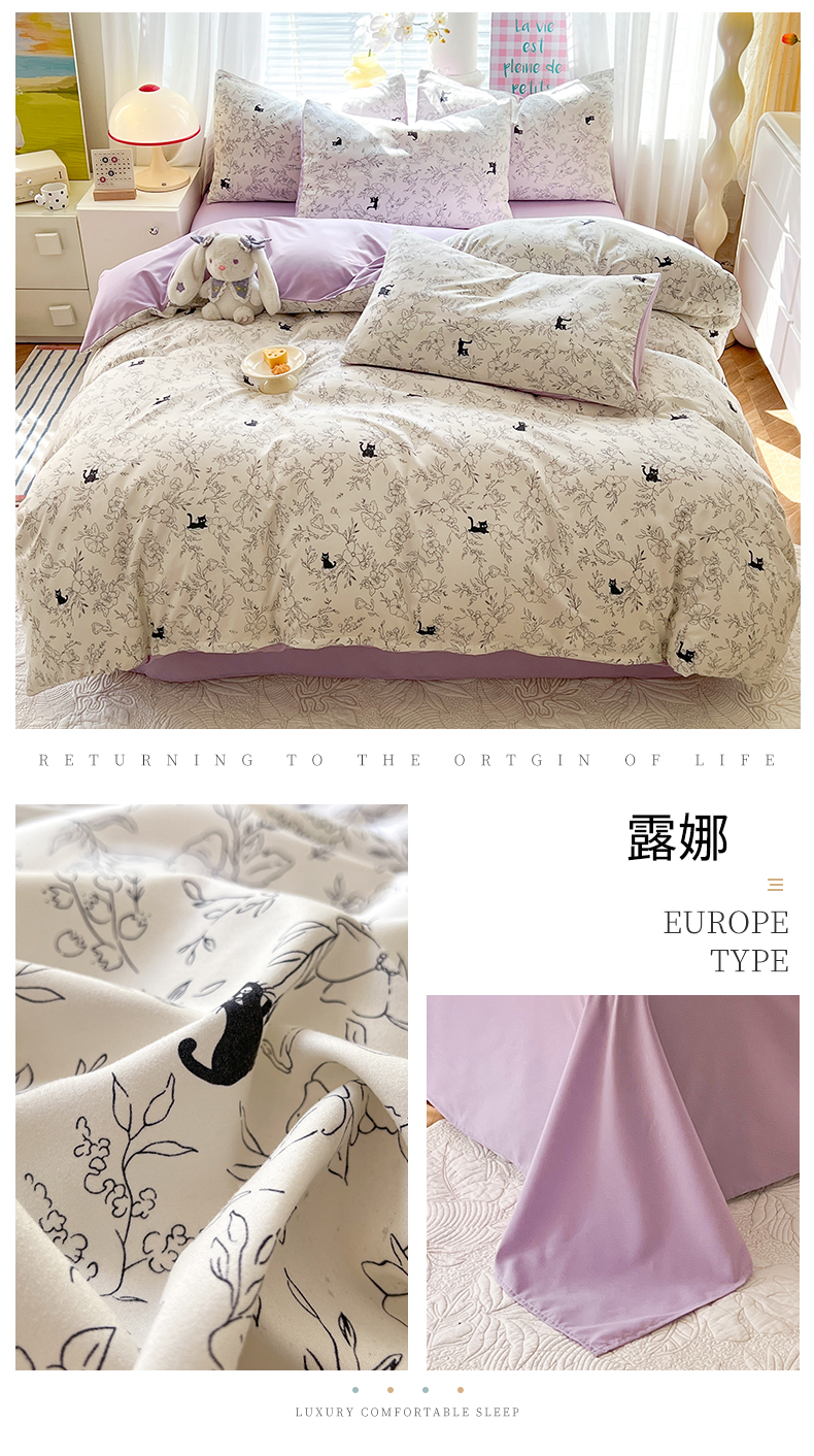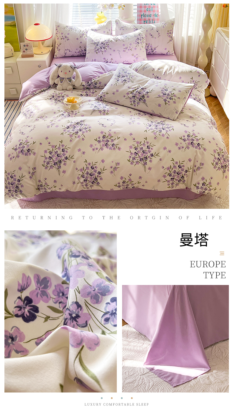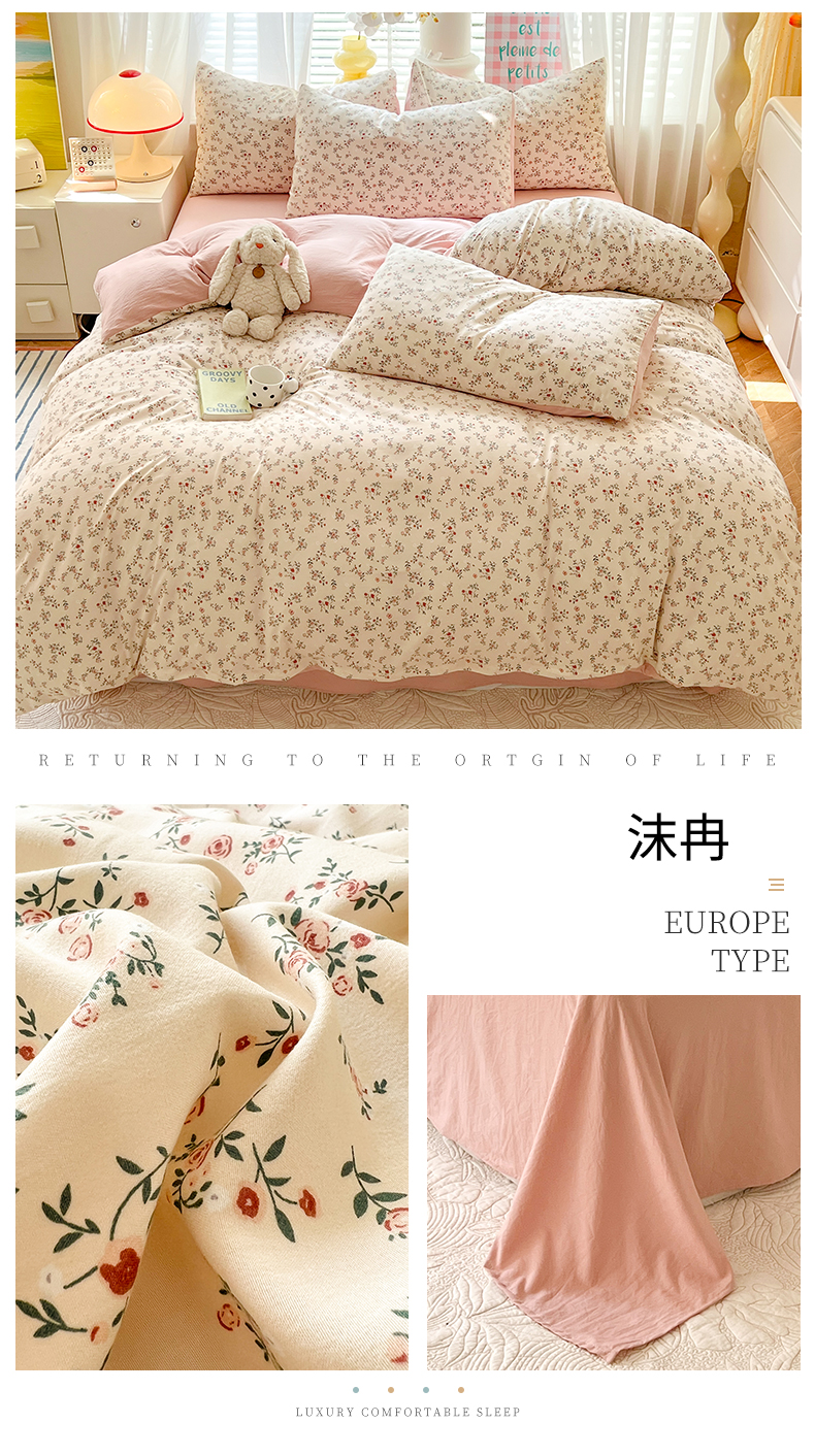 (总)多品家纺 2025新款云感双层纱高克重牛奶绒四件套,甜甜草莓,黛西紫,可爱新新,空谷兰香,蓝大格,猫猫小姐,木兰蝶,七里花香,十里春风,珍妮公主,紫大格