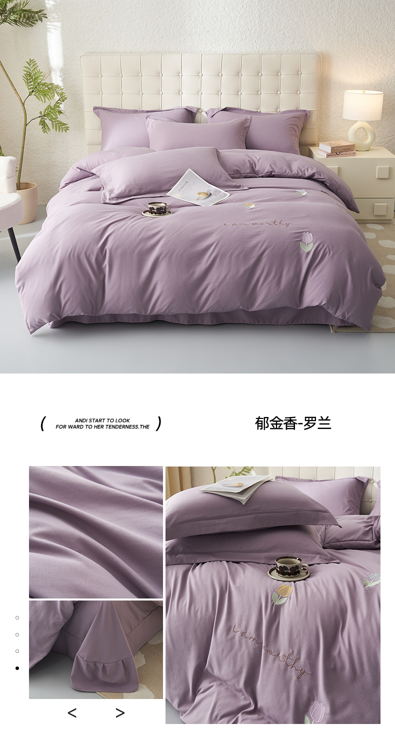闲鱼家纺 2025新款A类亲肤刺绣四件套春雅系列 郁金香-罗兰