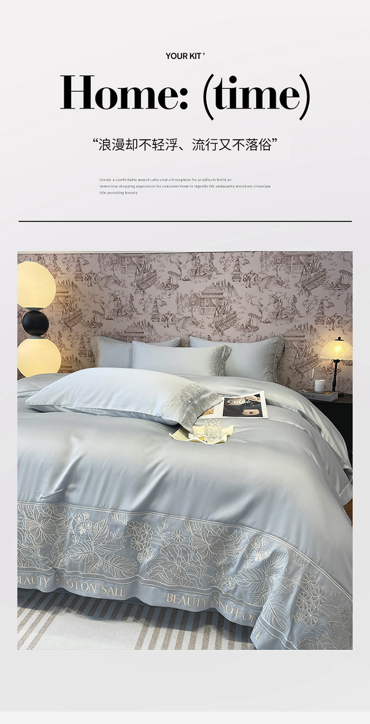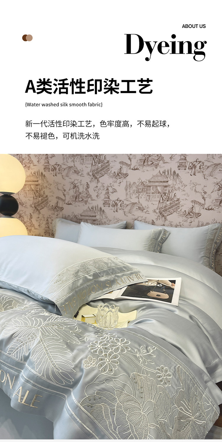 2024新款A类母婴级凉感真丝夏季裸睡丝滑床单床笠轻奢刺绣四件套 慕云灰