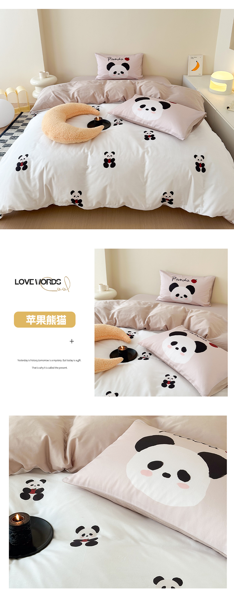 美乐迪家纺 2024ins韩风全棉四件套 苹果熊猫