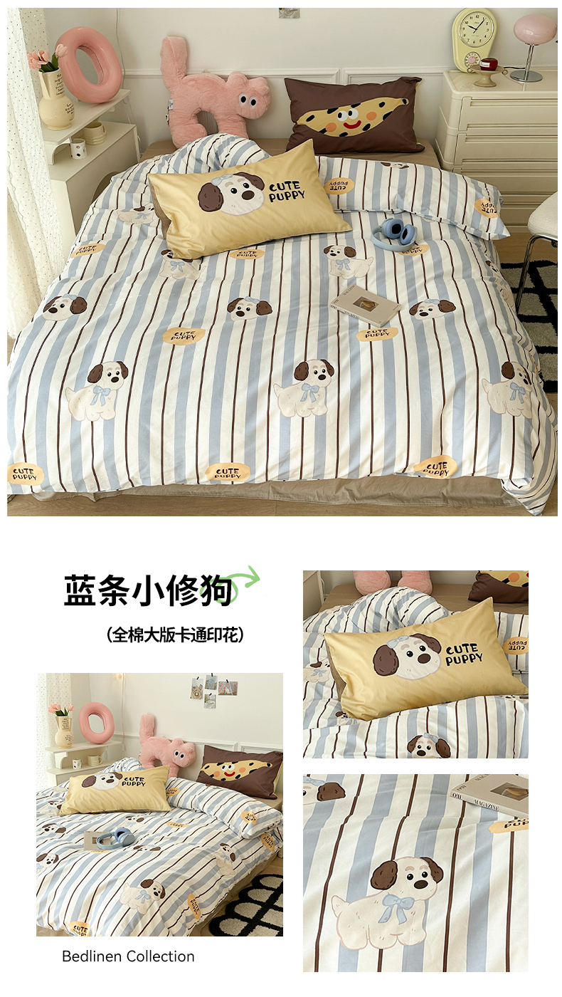商品名称:昔可家纺 2024新款全棉卡通大版印花四件套 蓝条小修狗