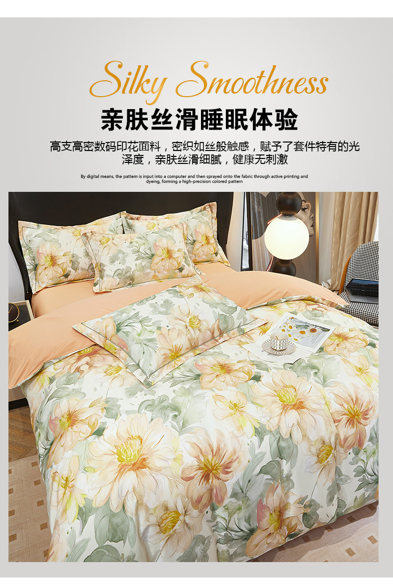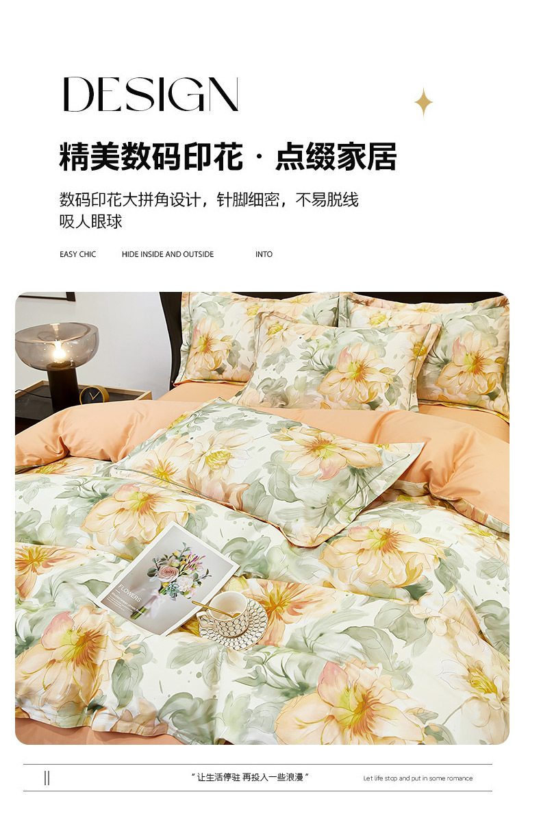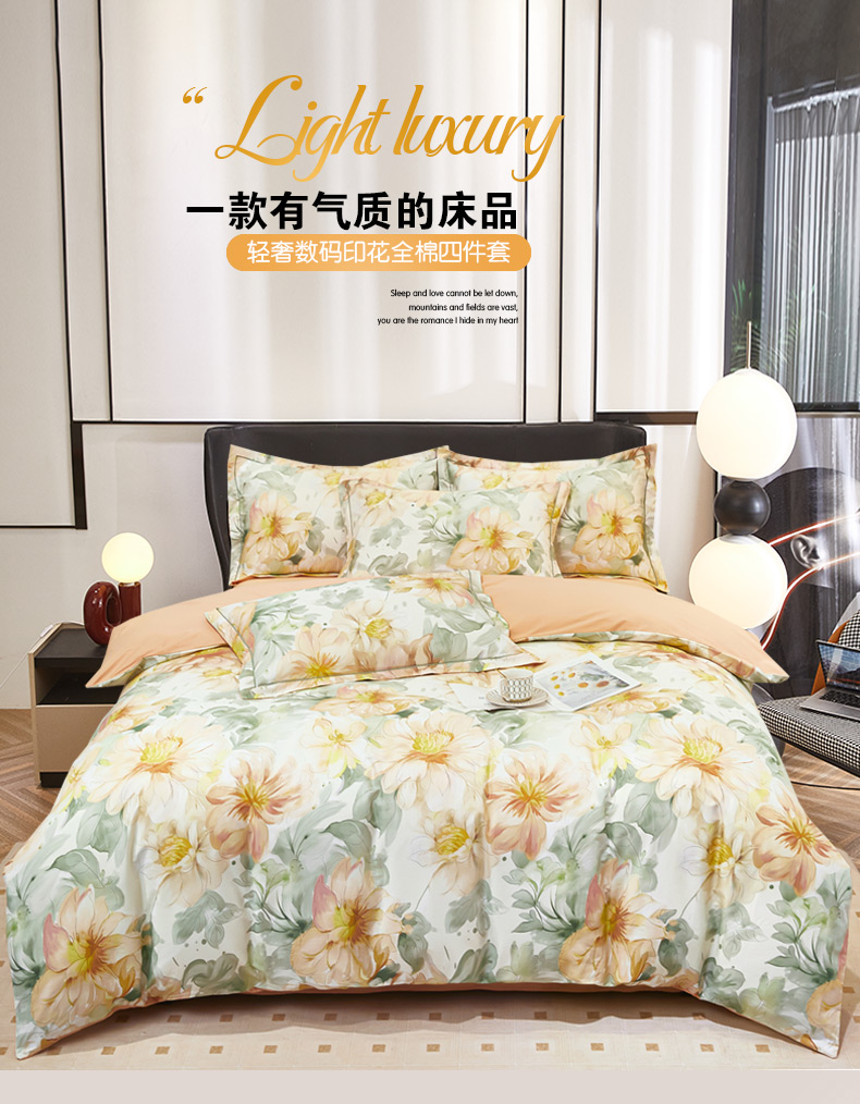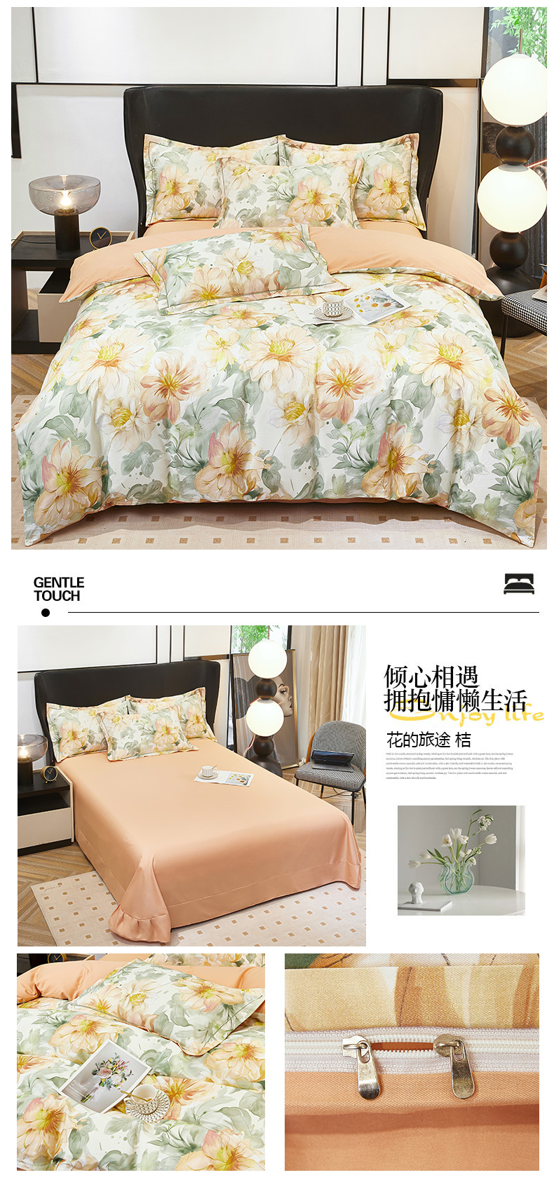 商品名称:雲归梦 2024新款全棉铂金棉数码印花四件套花的旅途 桔