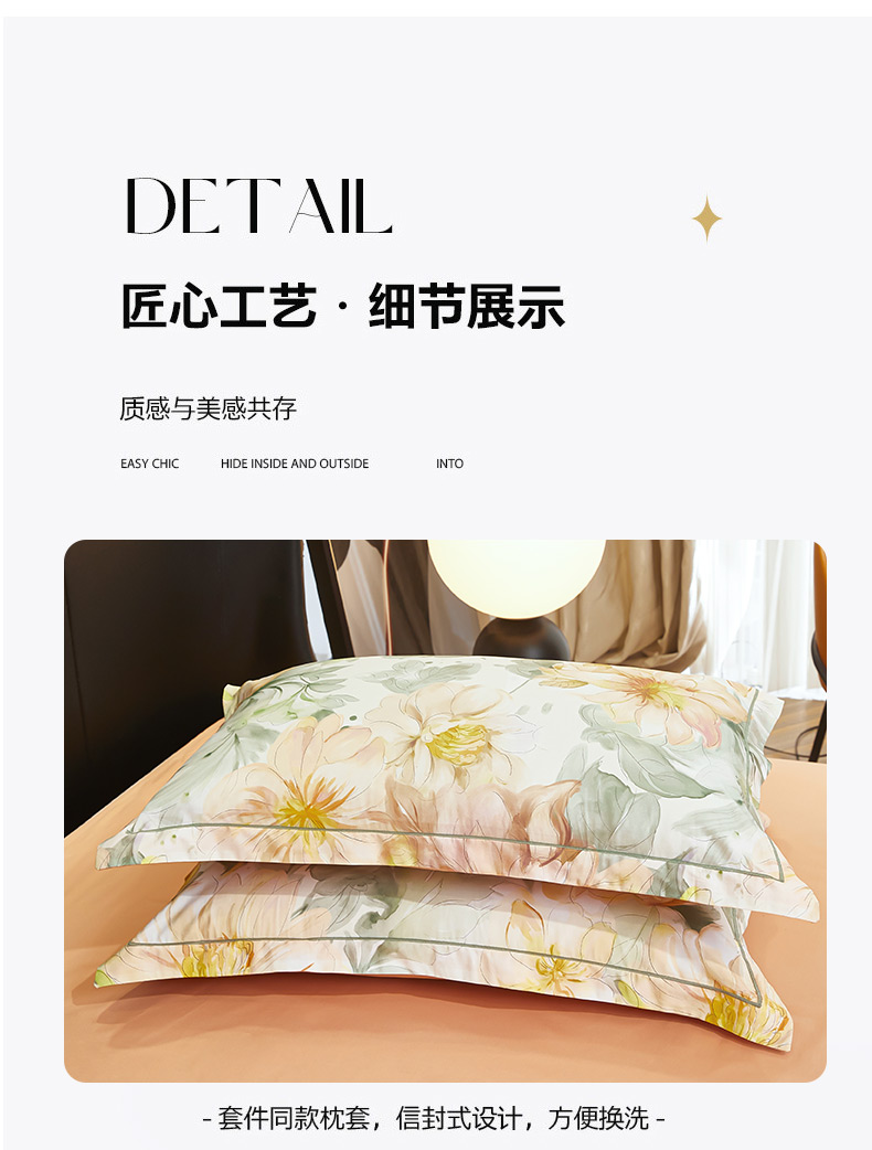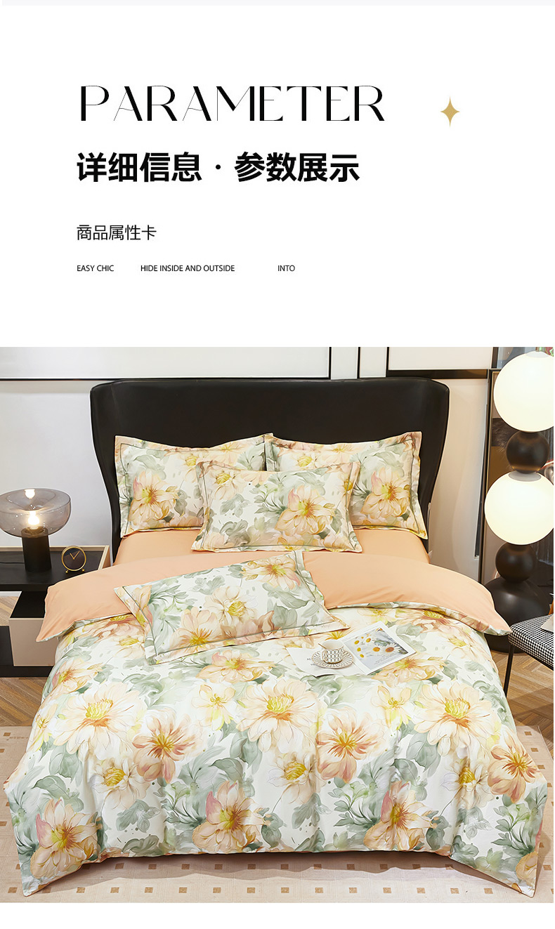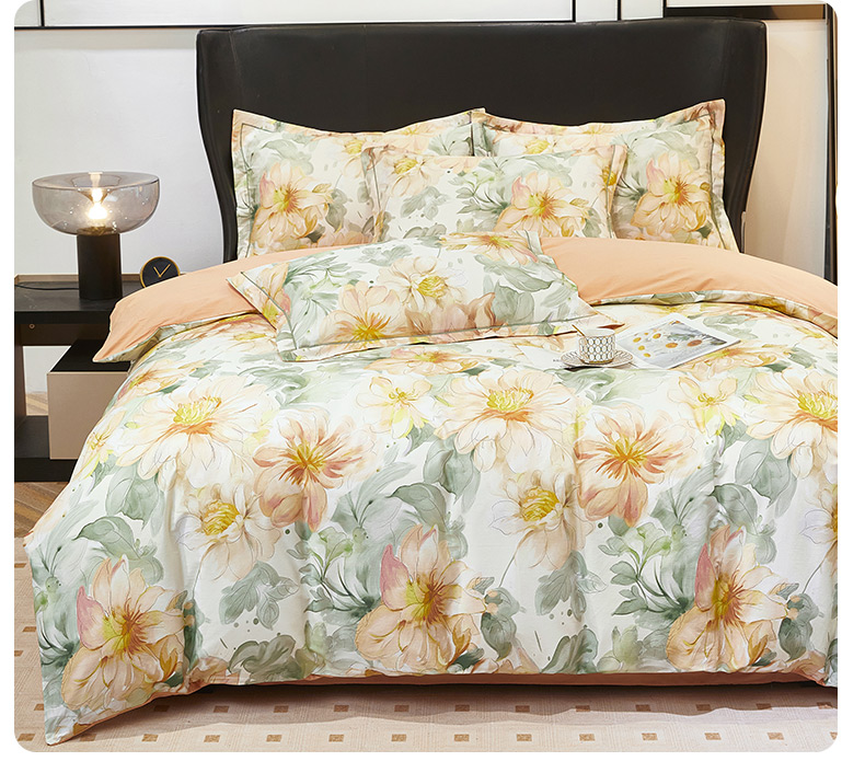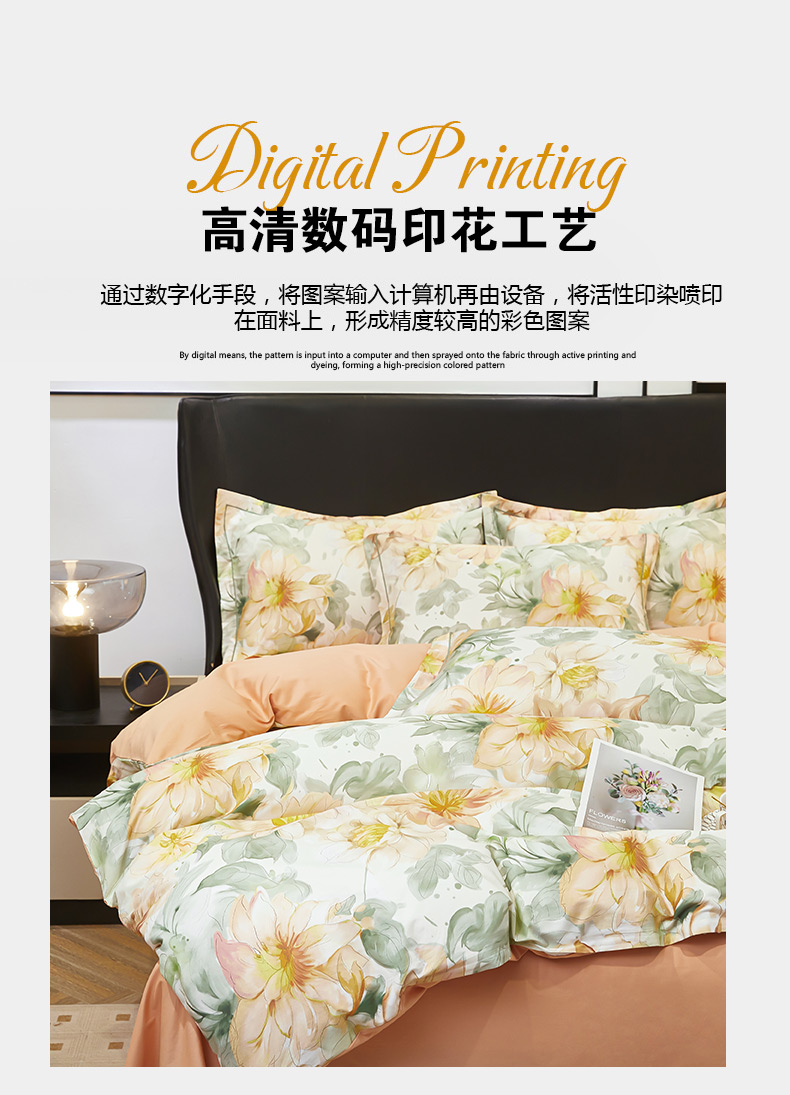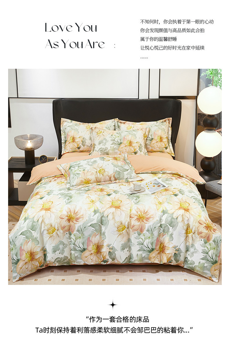 商品名称:雲归梦 2024新款全棉铂金棉数码印花四件套花的旅途 桔
