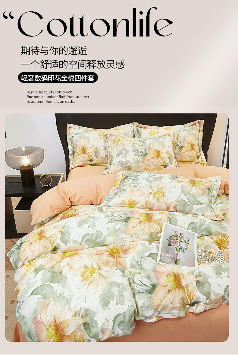 雲归梦 2024新款全棉铂金棉数码印花四件套花的旅途 桔