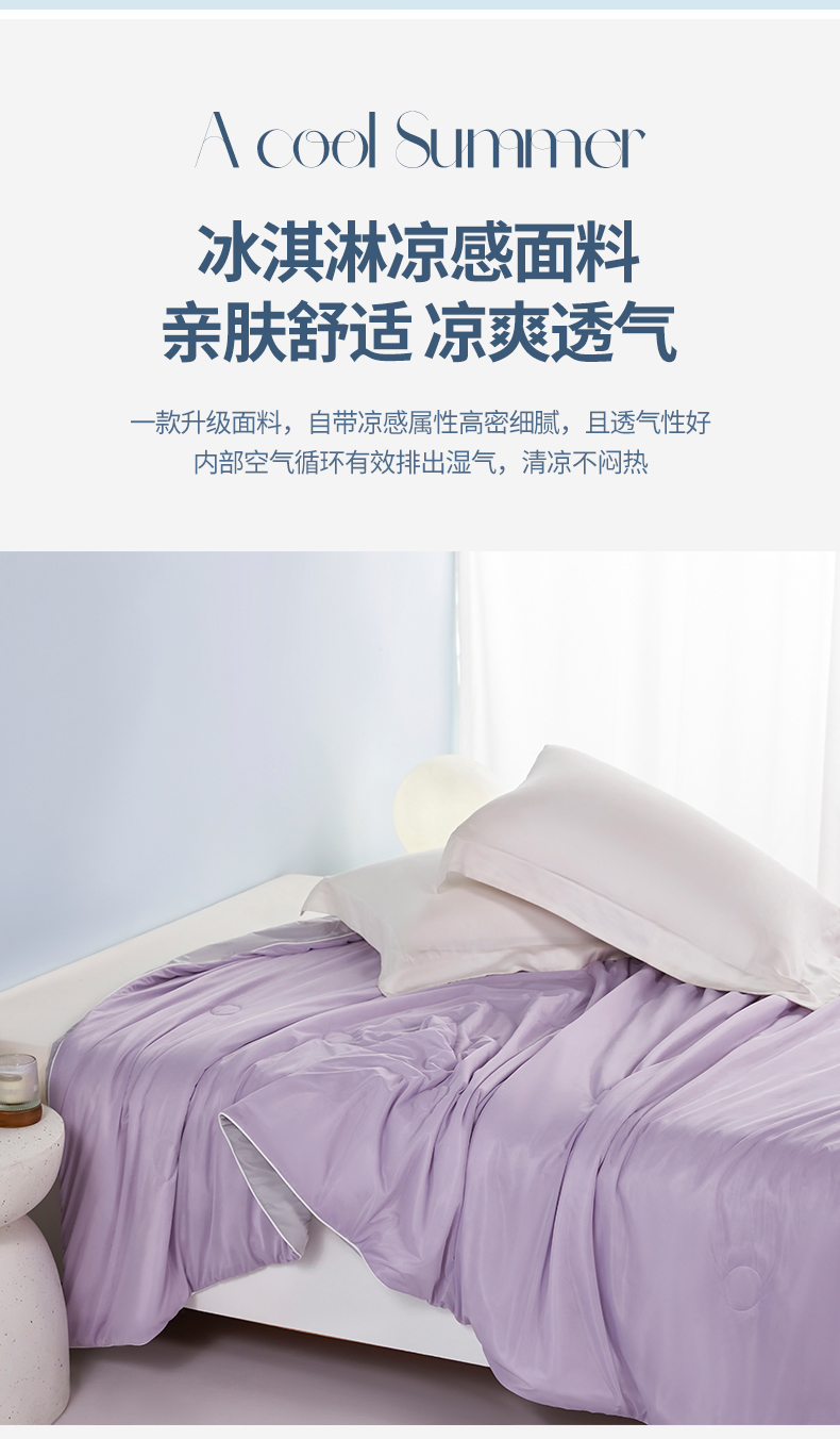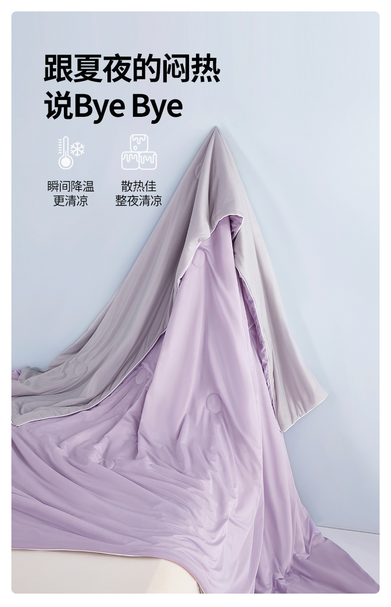 商品名称:美宜家 2025新款A类氨纶凉感丝冰激凌夏被被子被芯 紫白