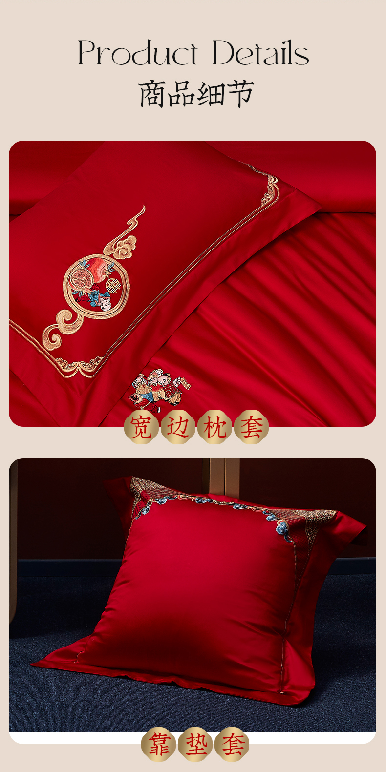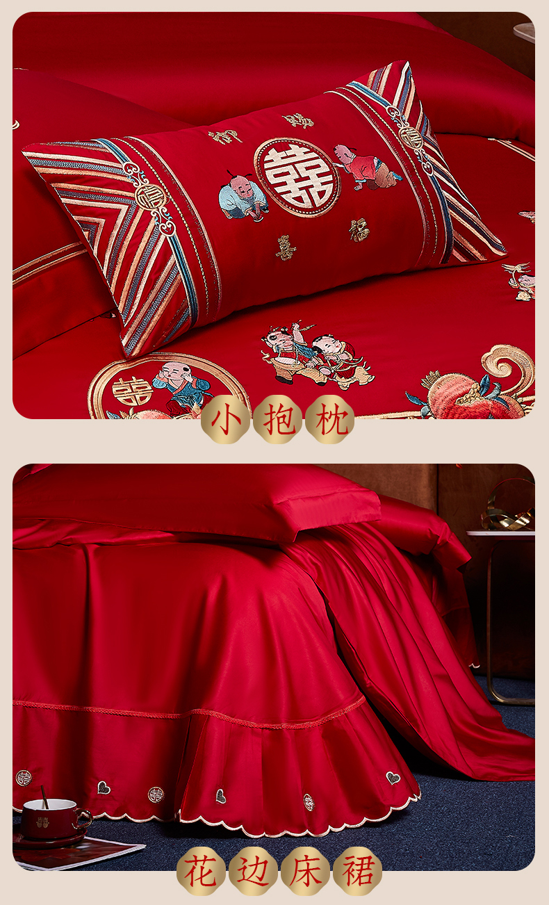 高大尚婚庆馆 2025新款长绒棉囍嫁系列婚庆四件套 欢喜百子,欢喜百子
