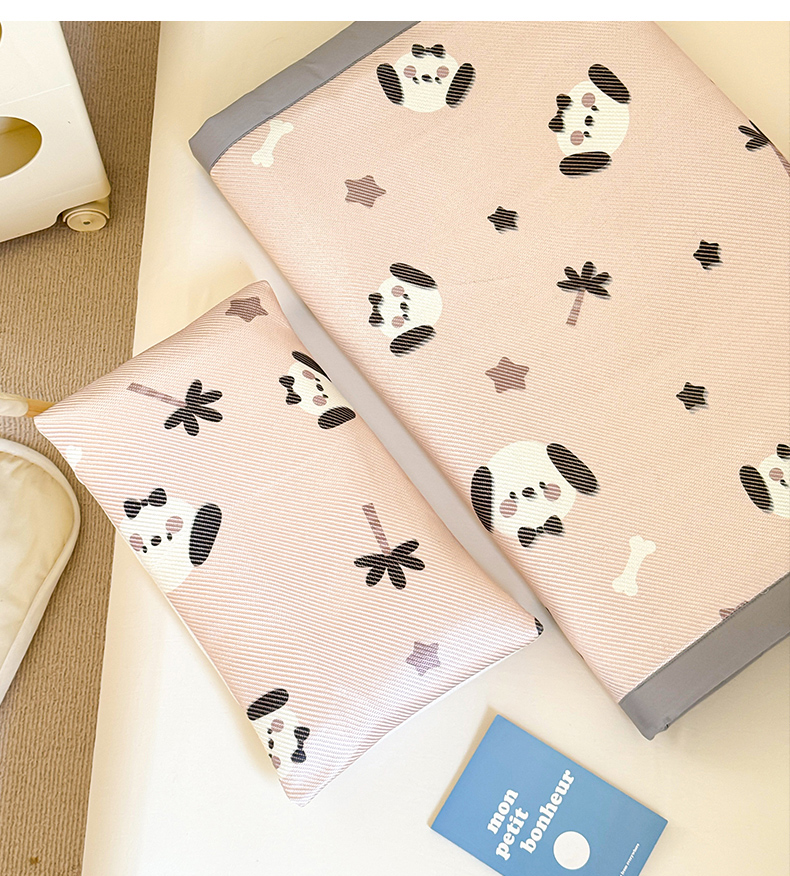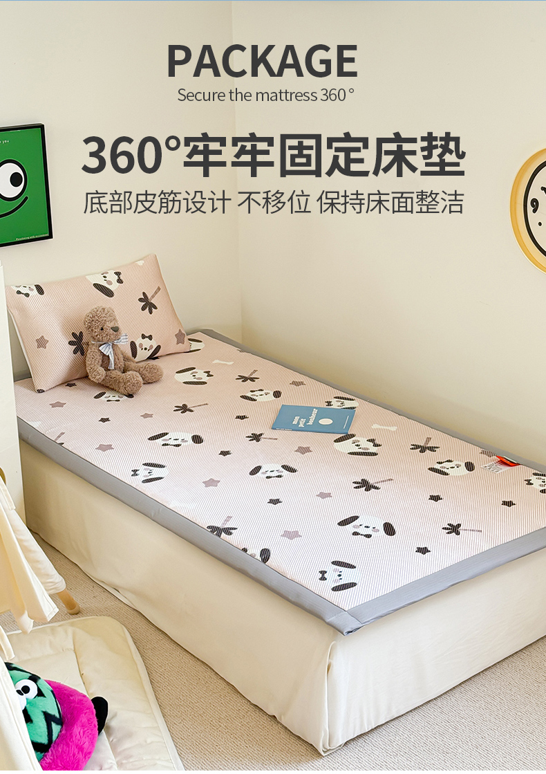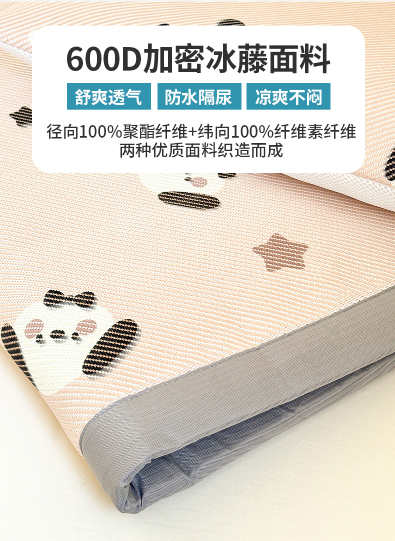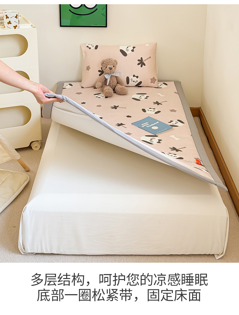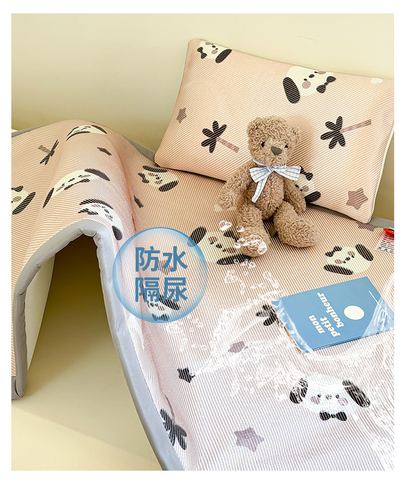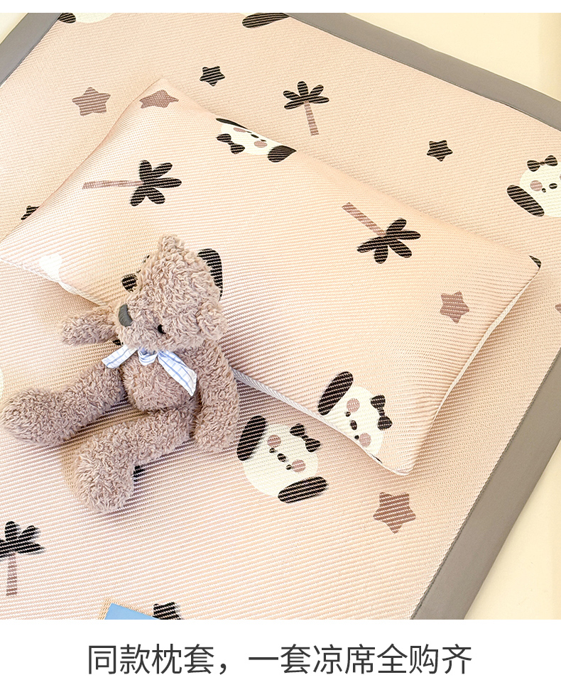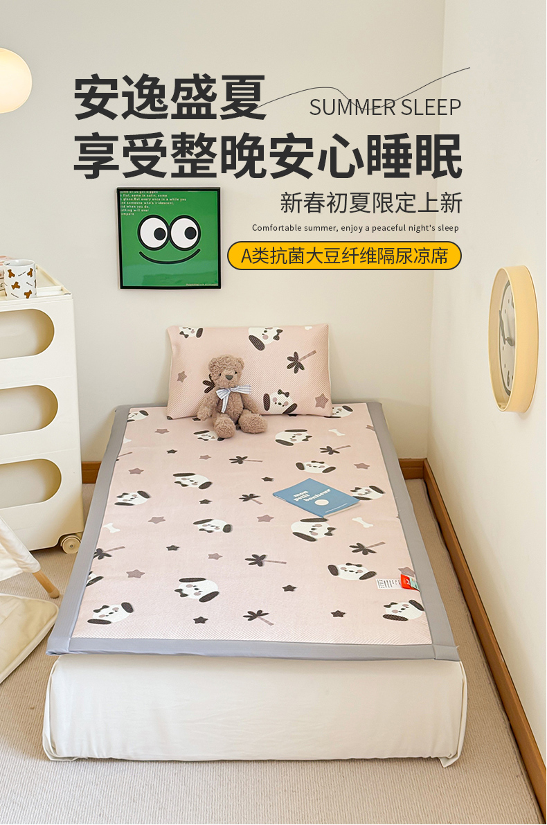 • 91家纺网 家纺一手货源 找家纺 喜多兔儿童家纺 2024新款抗菌大豆纤维隔尿凉席 卡其色领结小狗