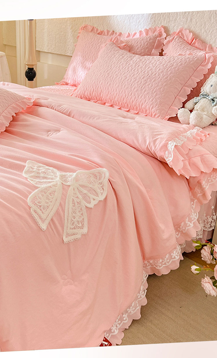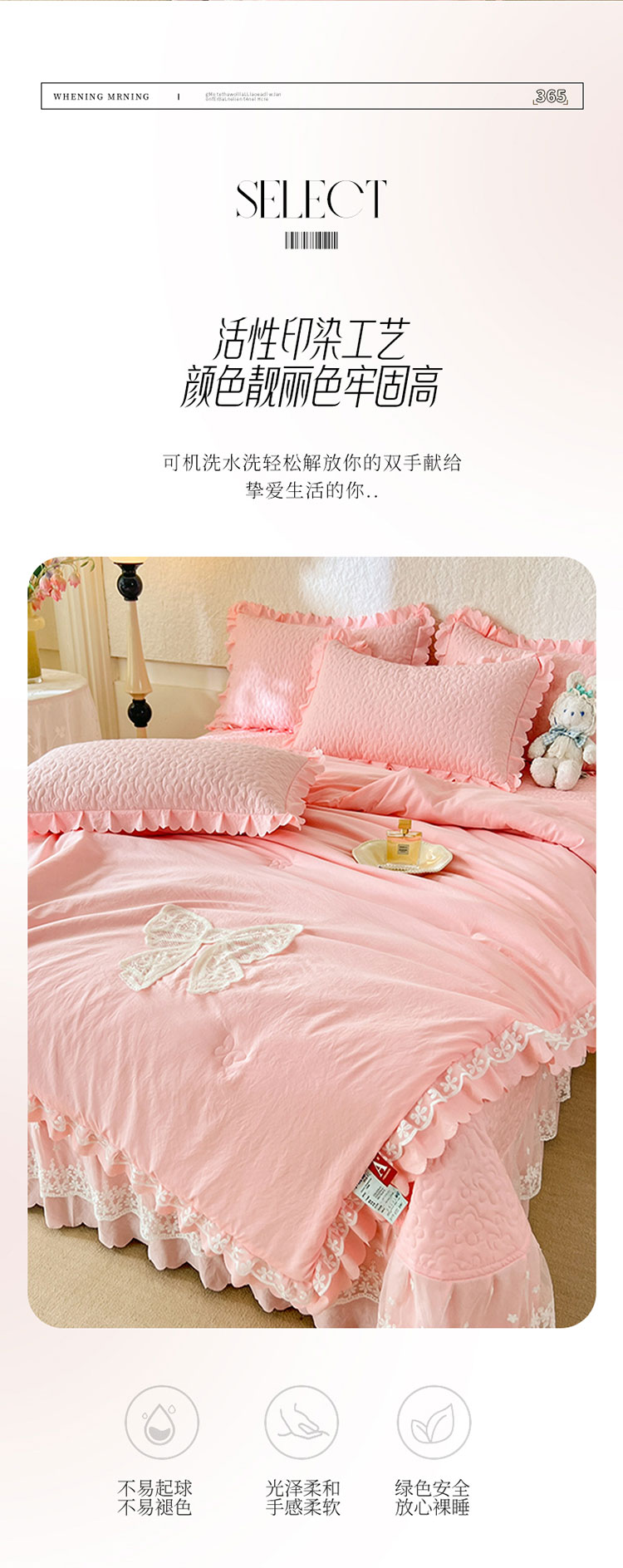 (总)2025韩版少女心法式公主风水洗棉蕾丝花边夏被床盖款四件套泡泡棉小竺棉凉蝴蝶结夏被床盖款四件套