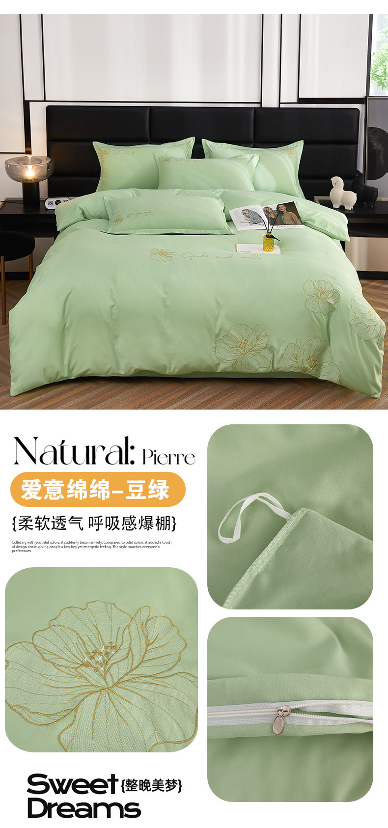 商品名称:佳宇轩 2024新款水洗棉四件套磨毛四件套绣花四件套纯色四件套 爱意绵绵-豆绿