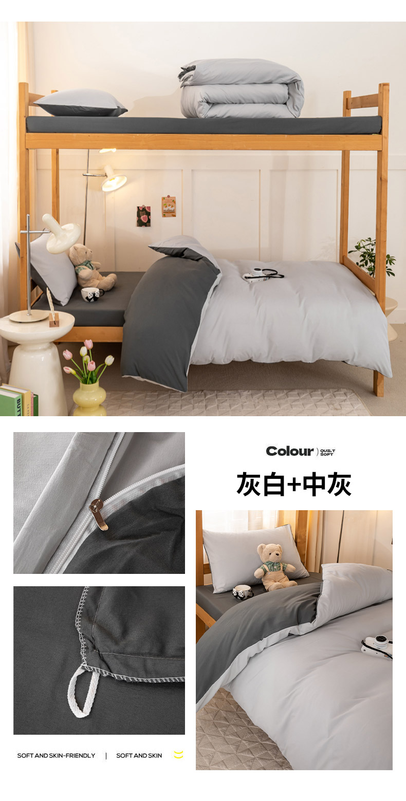 当前位置: 91家纺网 > 商品网购 > 床品套件 > 四件套 > 普通磨毛四件套 > 芷凡家纺 2024新款水洗磨毛纯色双拼学生三件套四件套 灰白+中灰