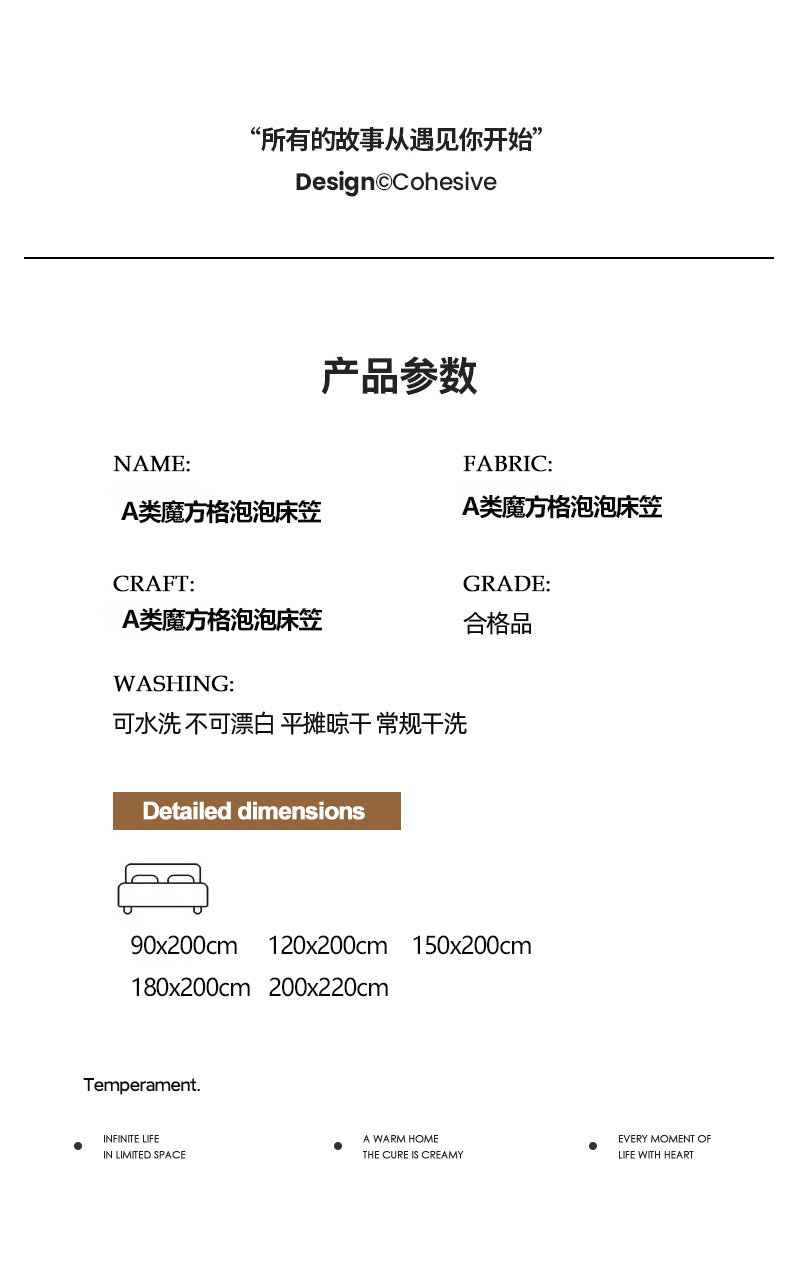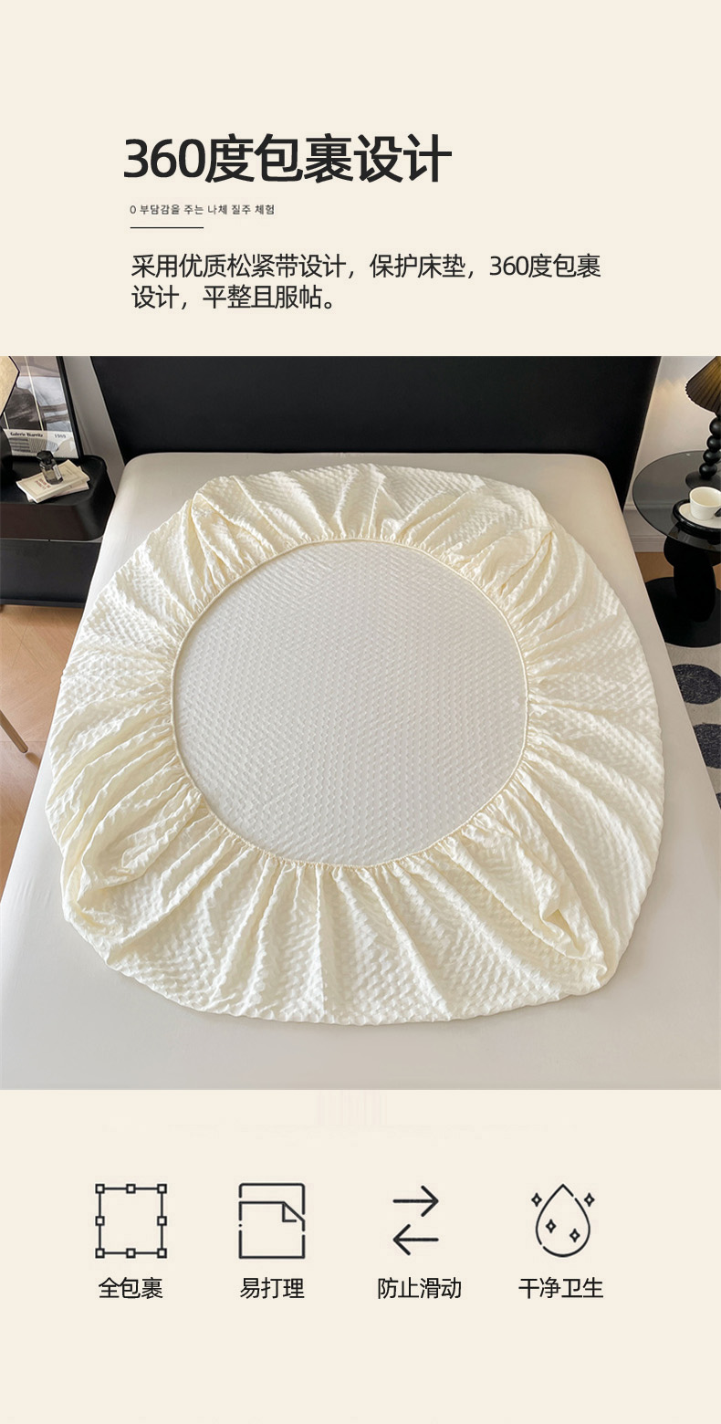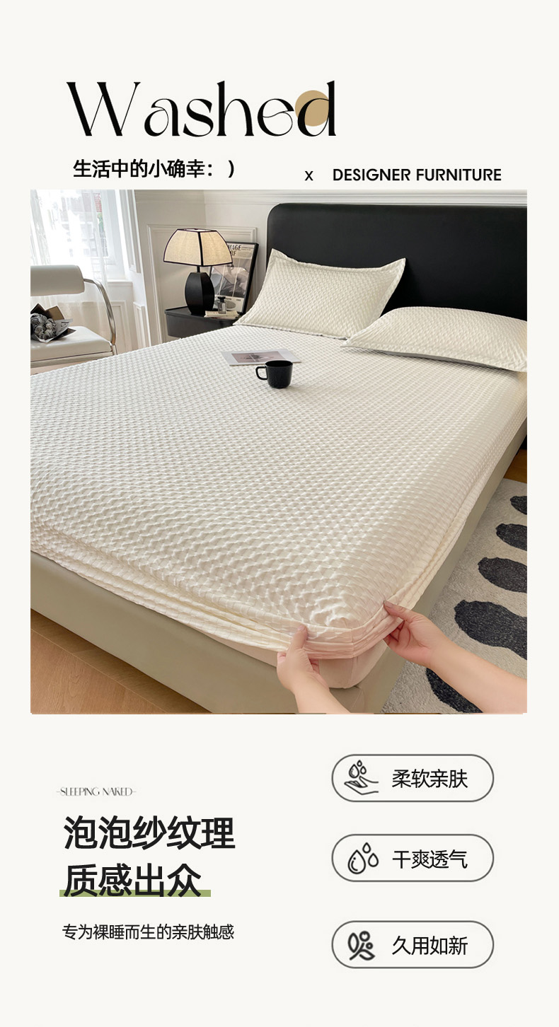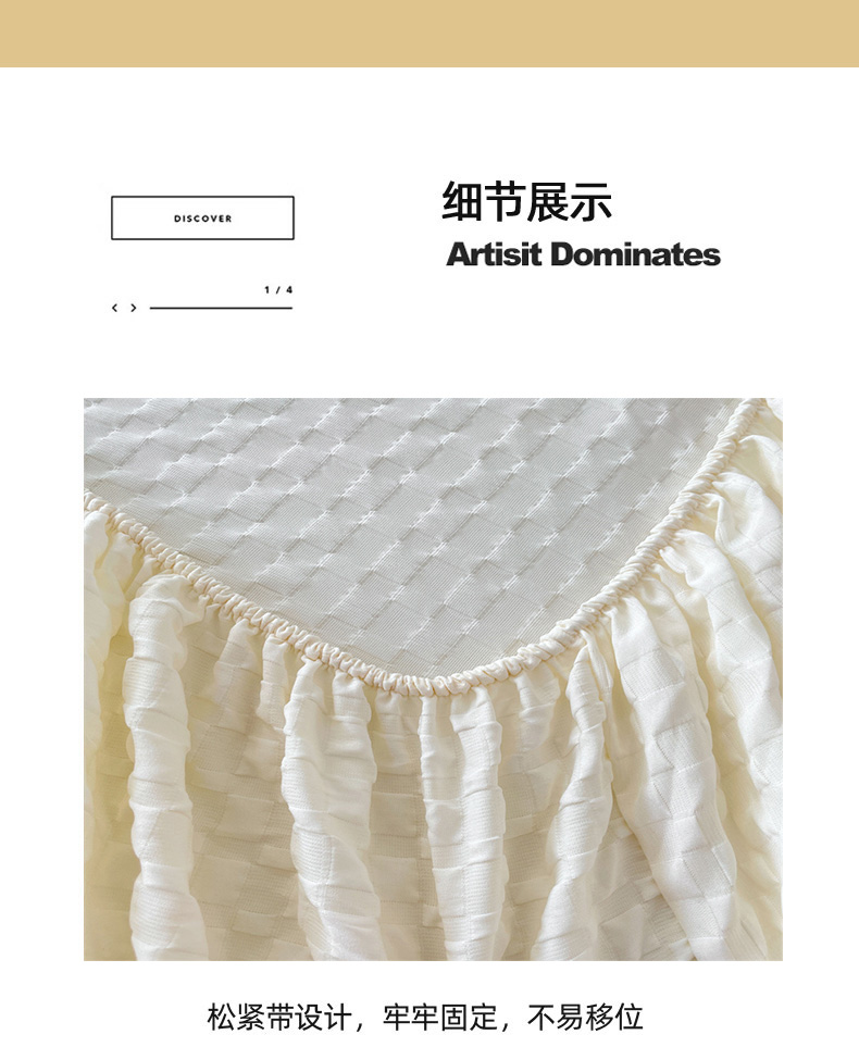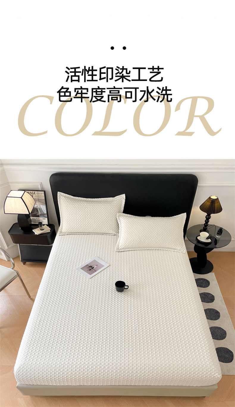 商品名称:梦舒羽 2025新款魔方格泡泡大提花床笠华夫格床垫保护套 魔方格泡泡-珍珠白
