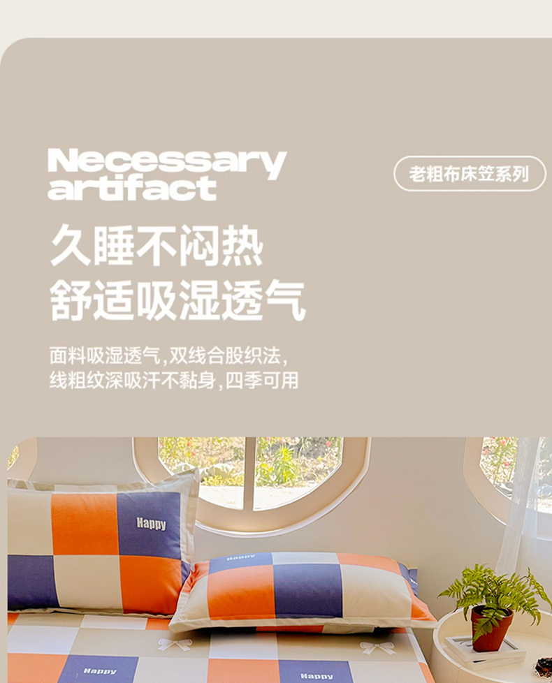 家贝爱 2024新款原棉老粗布床笠 欢乐结