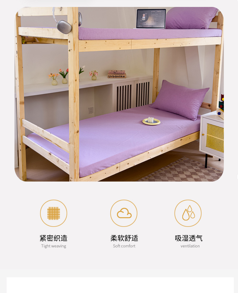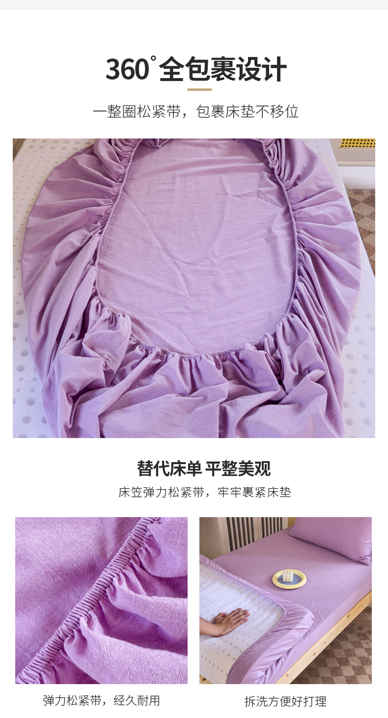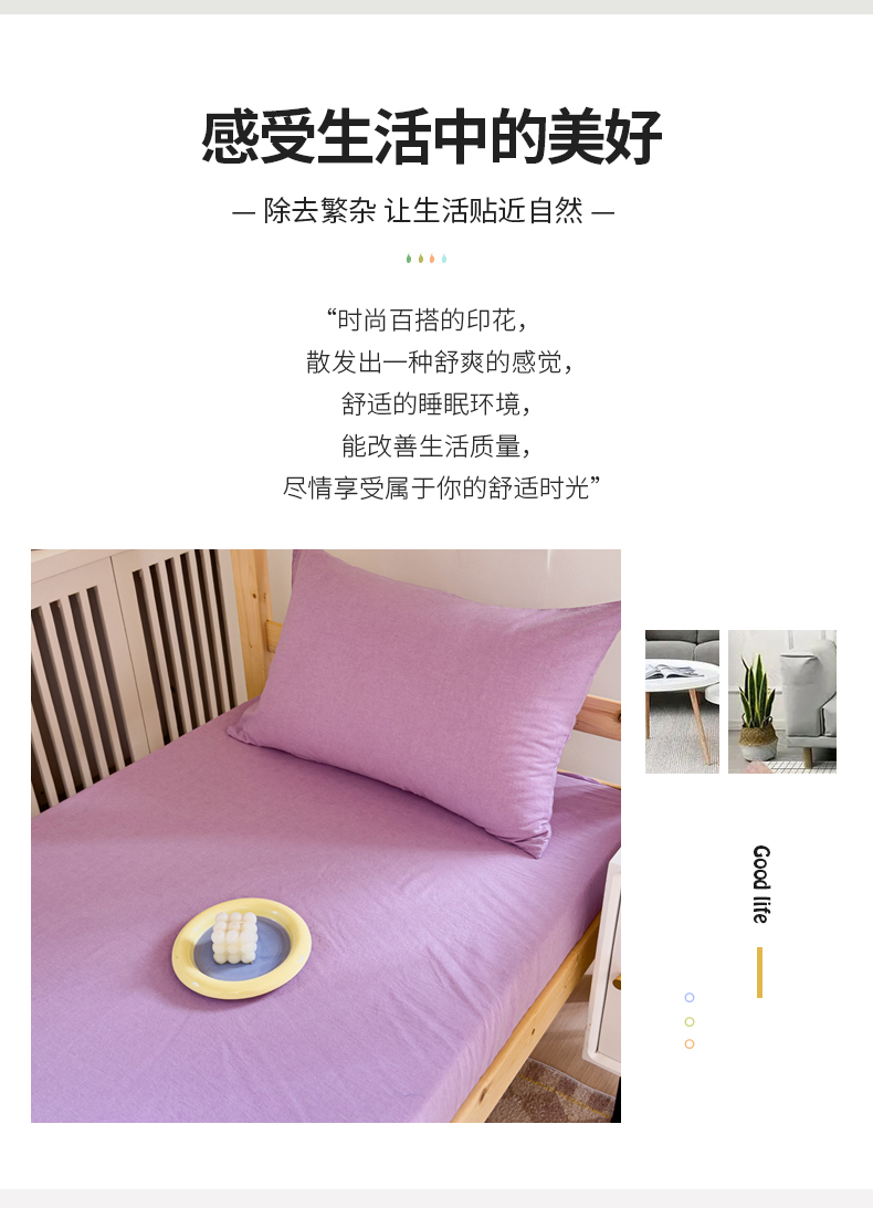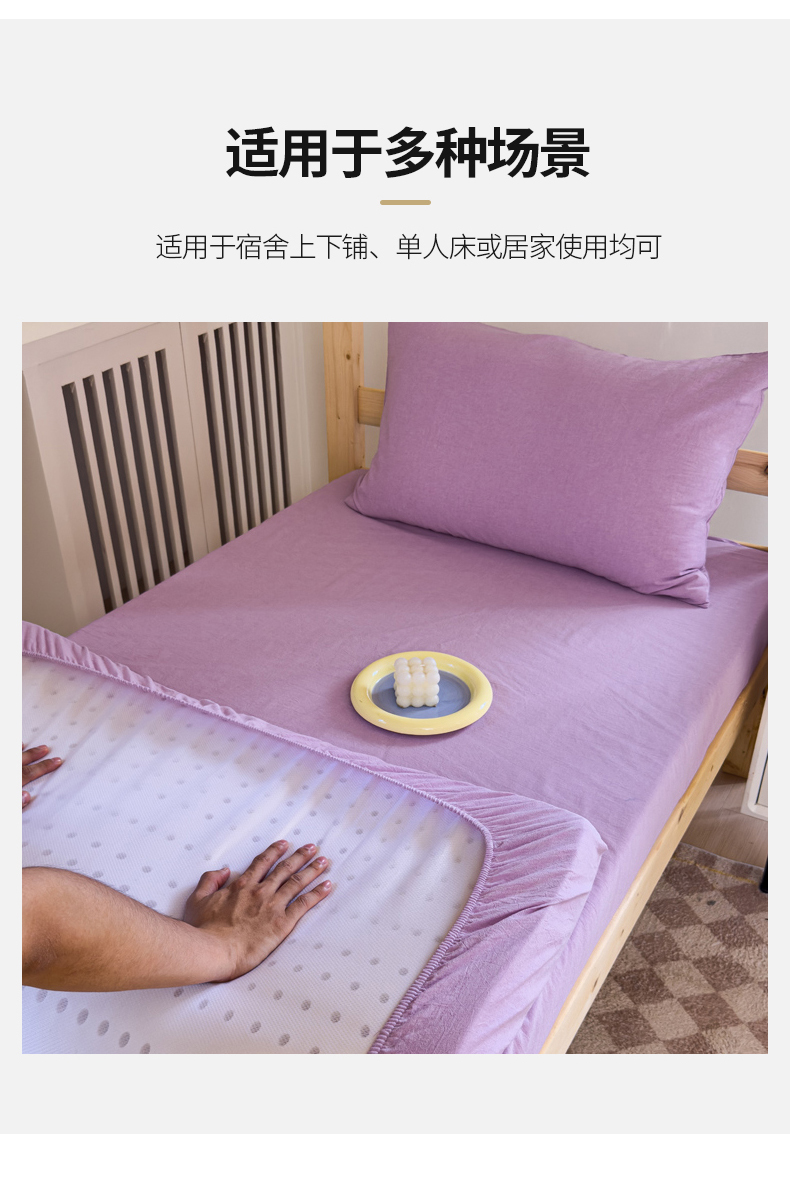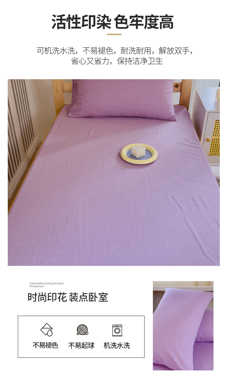 • 91家纺网 家纺一手货源 找家纺 金丝鸟家纺 2024新款A类全棉色织水洗棉单床笠系列(学生床) 烟紫