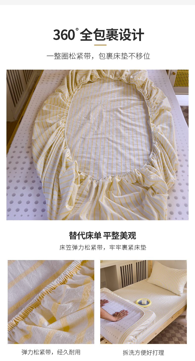 金丝鸟家纺 2024新款A类全棉色织水洗棉单床笠系列(学生床) 黄色中条