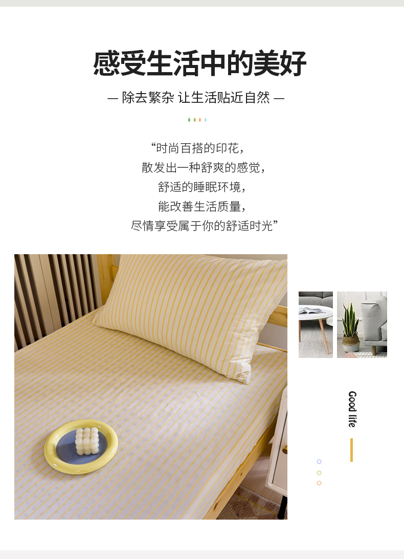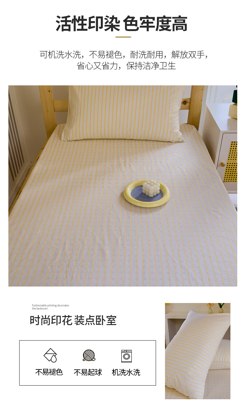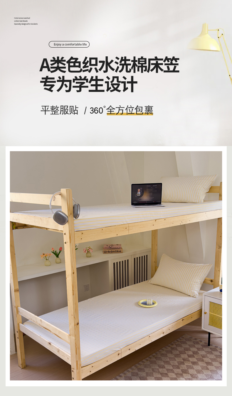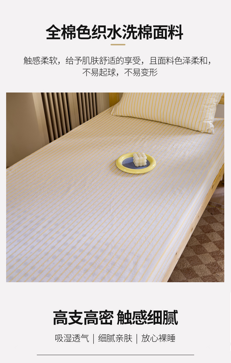 • 91家纺网 家纺一手货源 找家纺 金丝鸟家纺 2024新款A类全棉色织水洗棉单床笠系列(学生床) 黄色中条