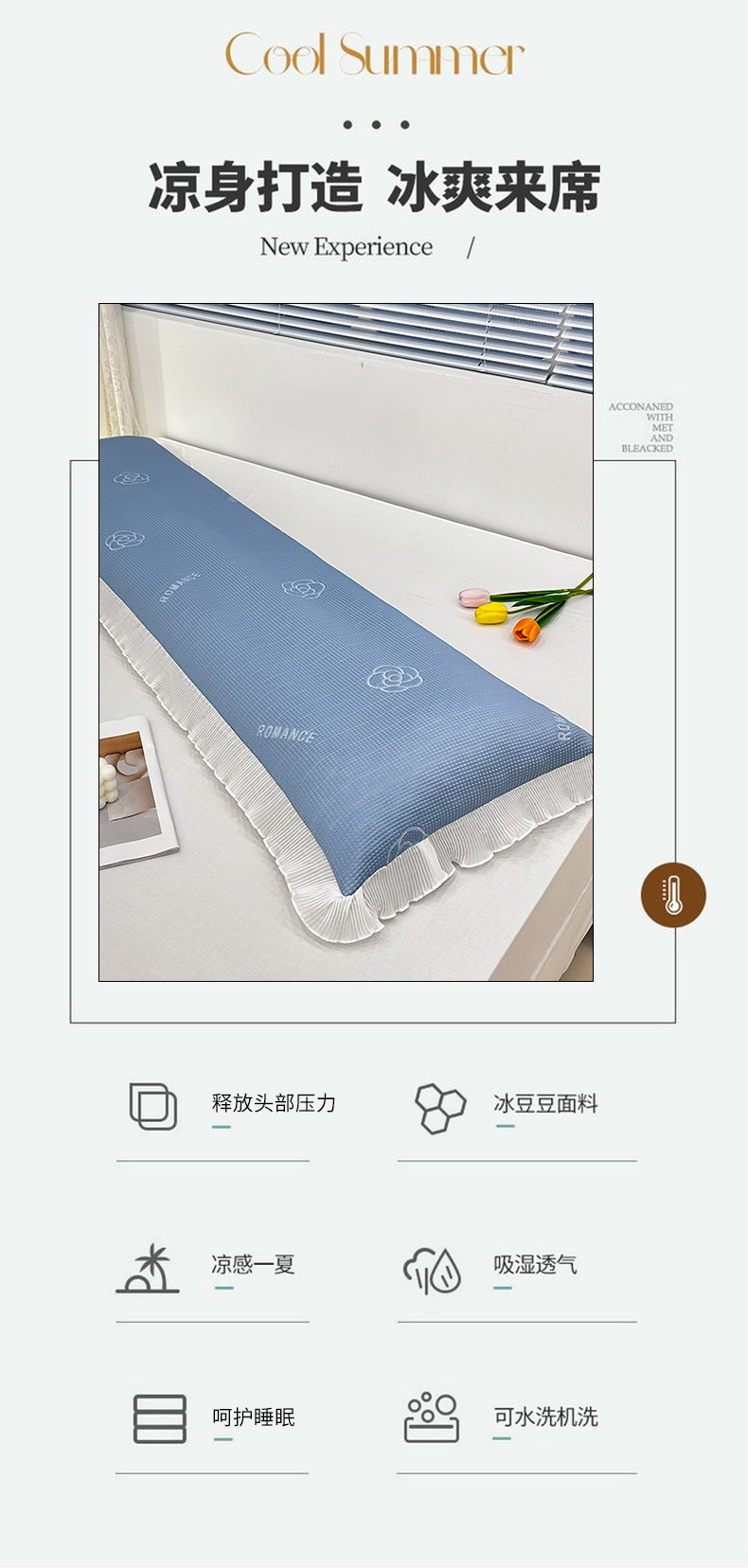 商品名称:2024新款A类冰豆豆花边双人长枕套 山茶花-湖蓝