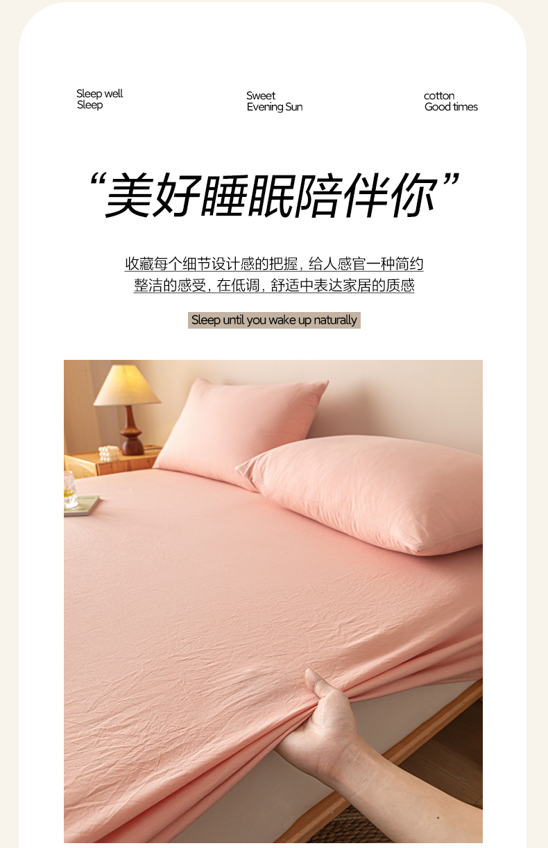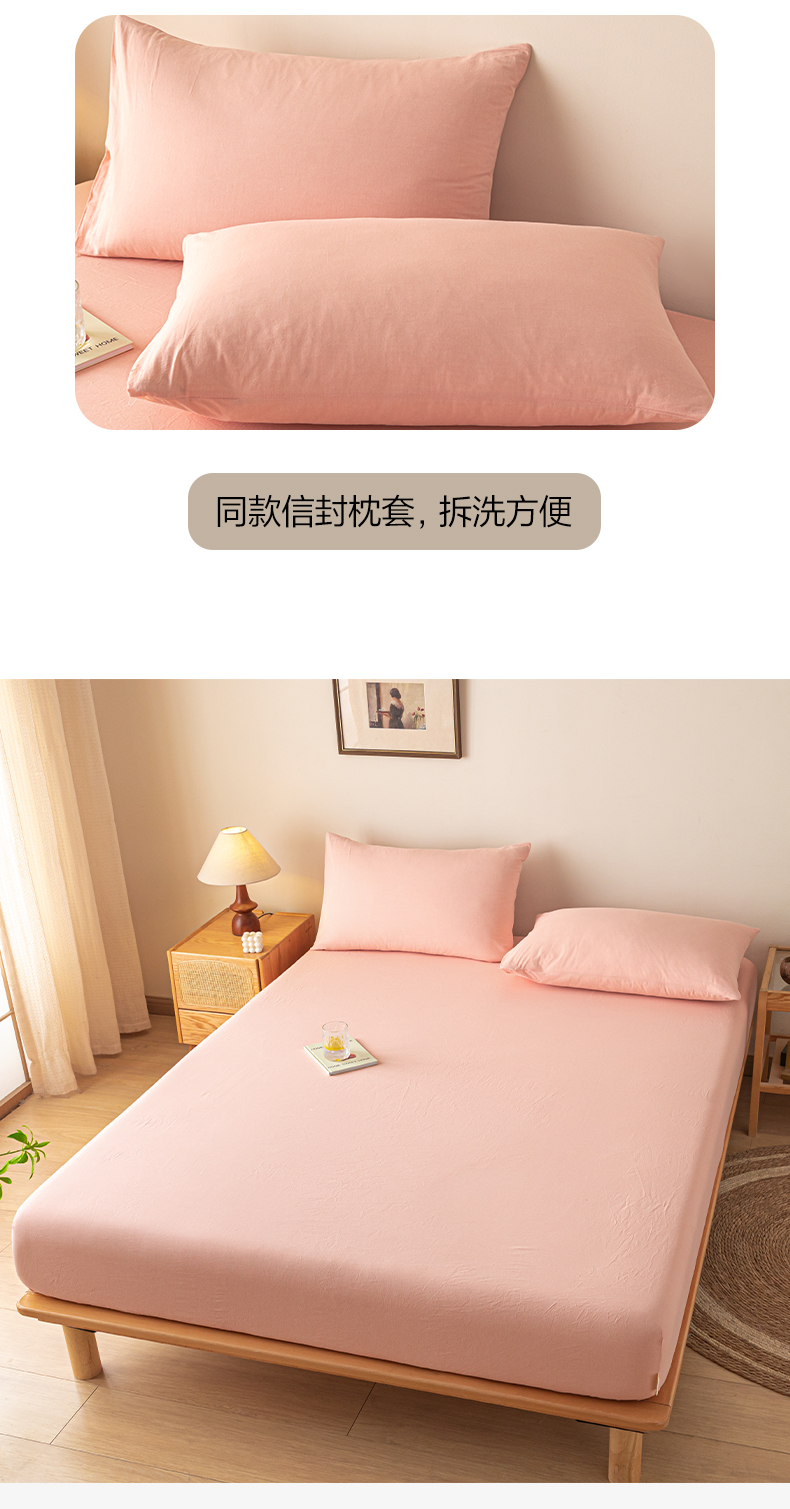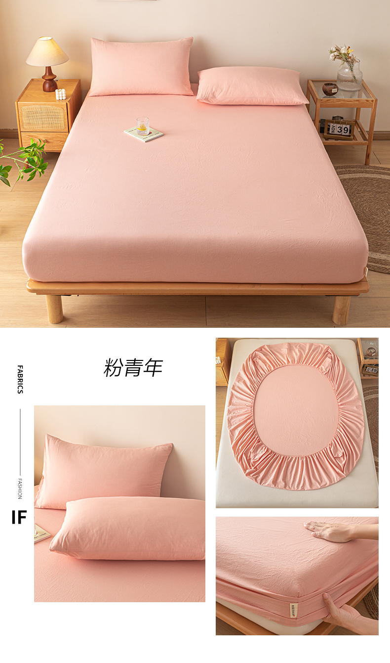 • 91家纺网 家纺一手货源 找家纺 卡伦家纺 2025全棉色织水洗棉单层床笠席梦思保护套 粉青年