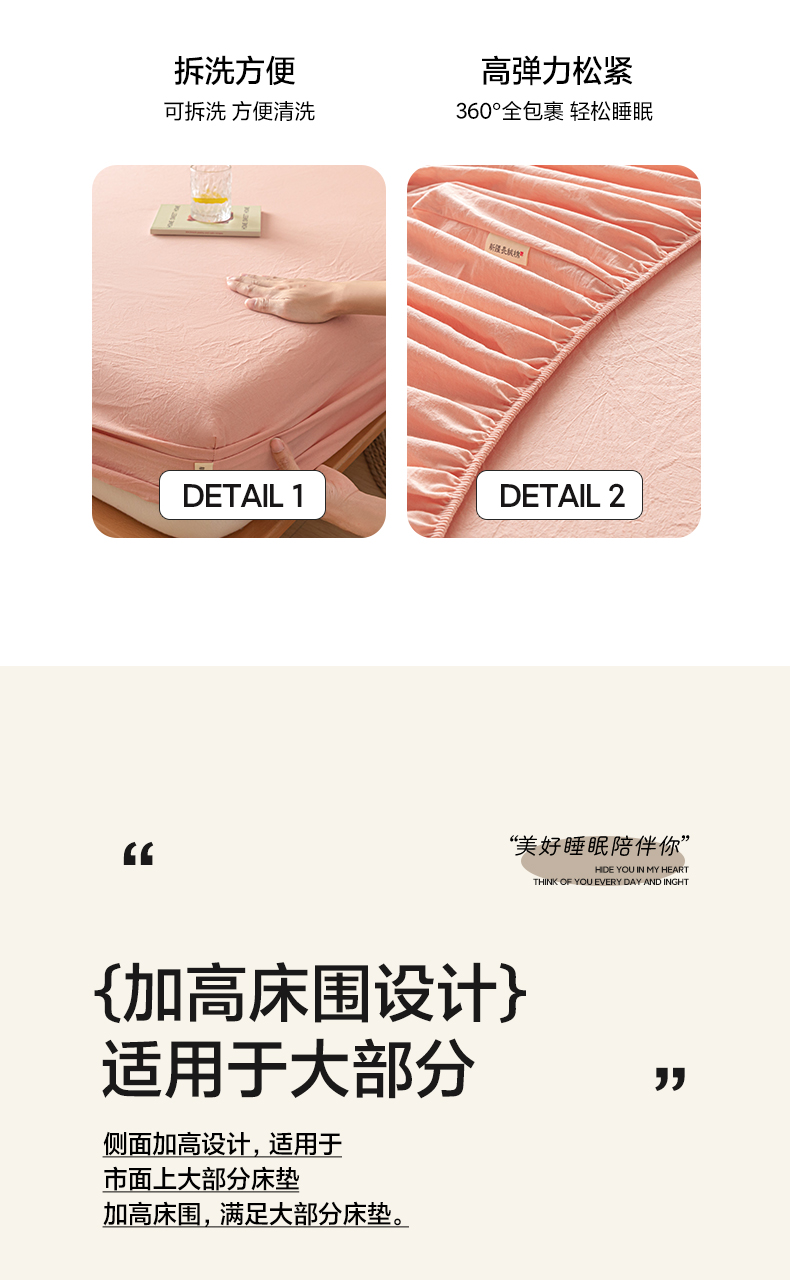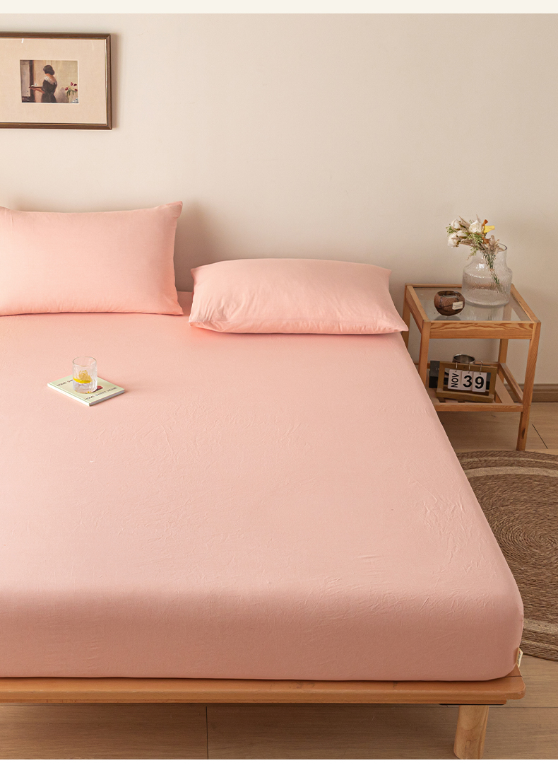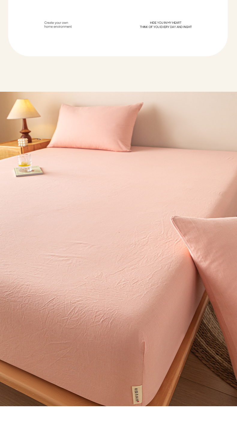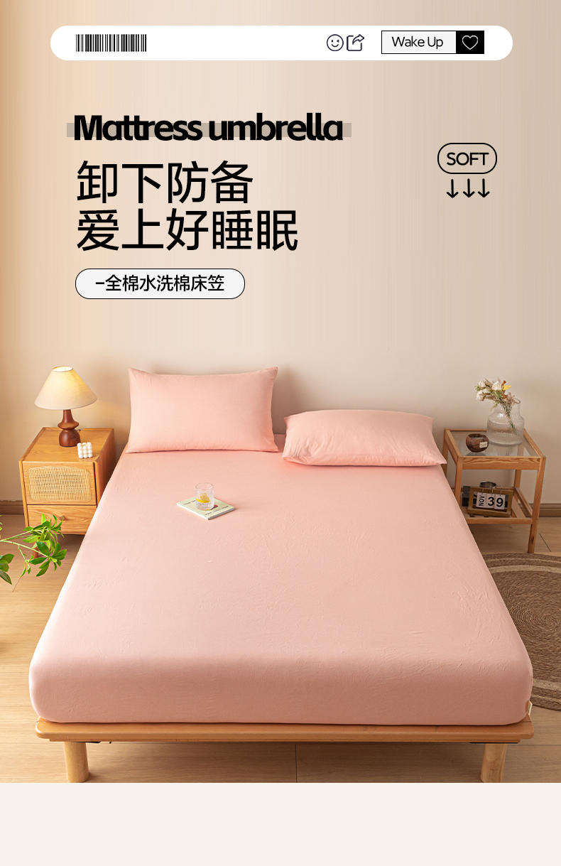 • 91家纺网 家纺一手货源 找家纺 卡伦家纺 2025全棉色织水洗棉单层床笠席梦思保护套 粉青年
