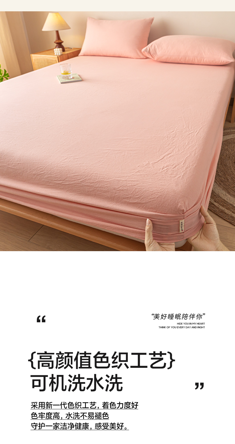 卡伦家纺 2025全棉色织水洗棉单层床笠席梦思保护套 粉青年