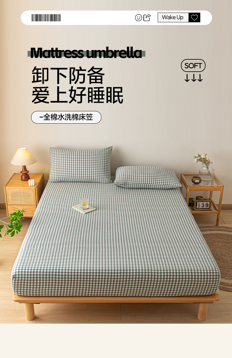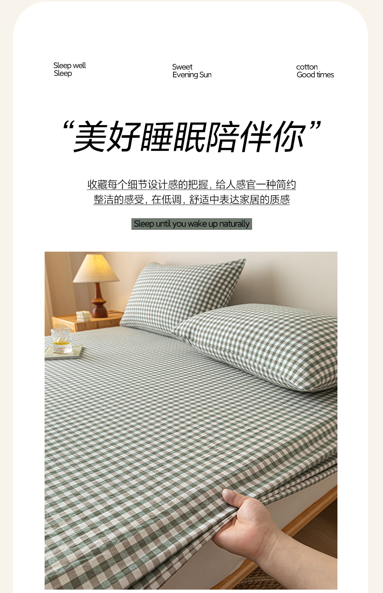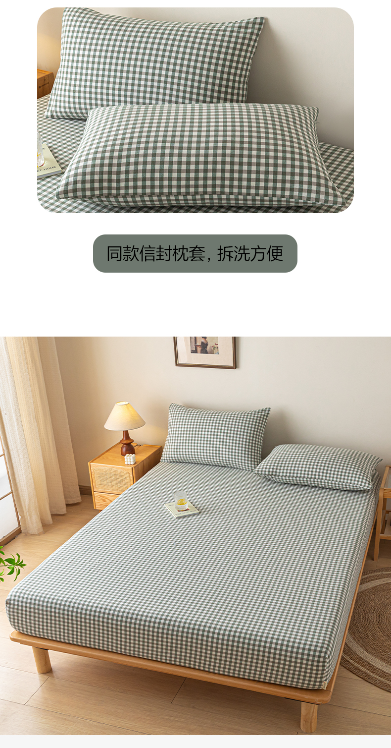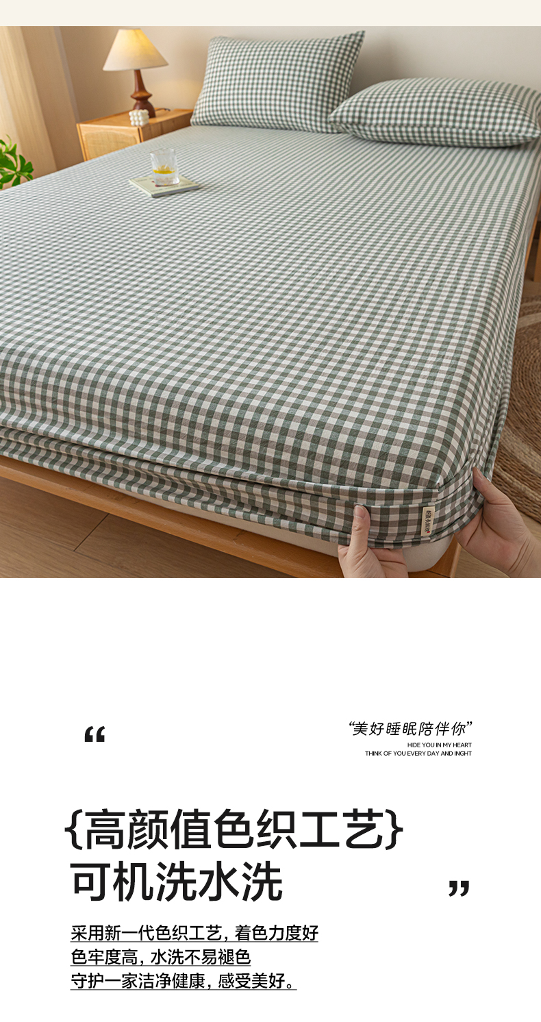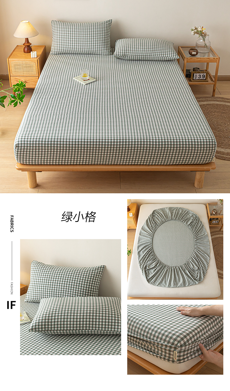 • 91家纺网 家纺一手货源 找家纺 卡伦家纺 2025全棉色织水洗棉单层床笠席梦思保护套 绿小格
