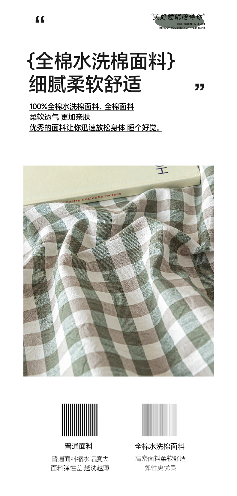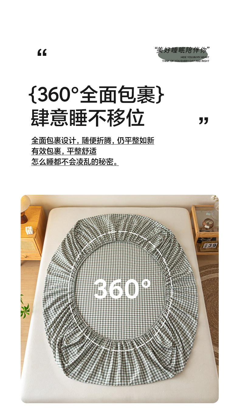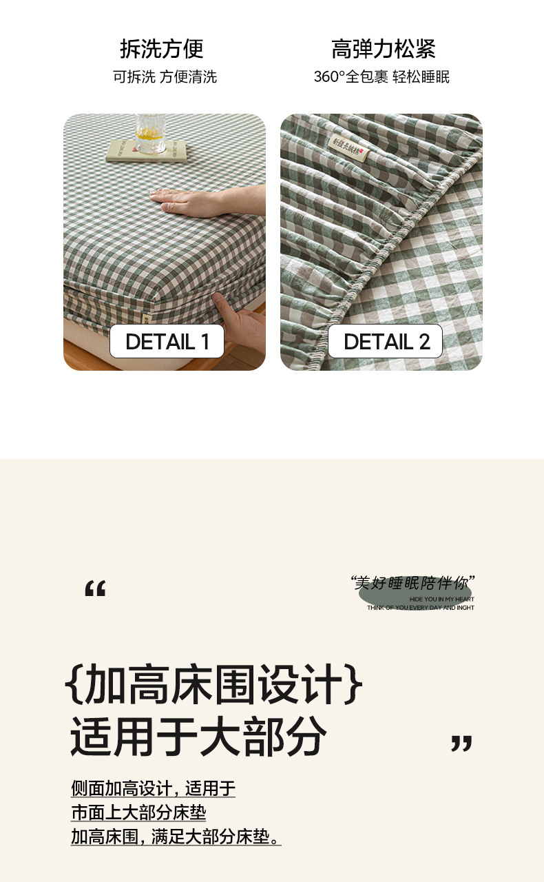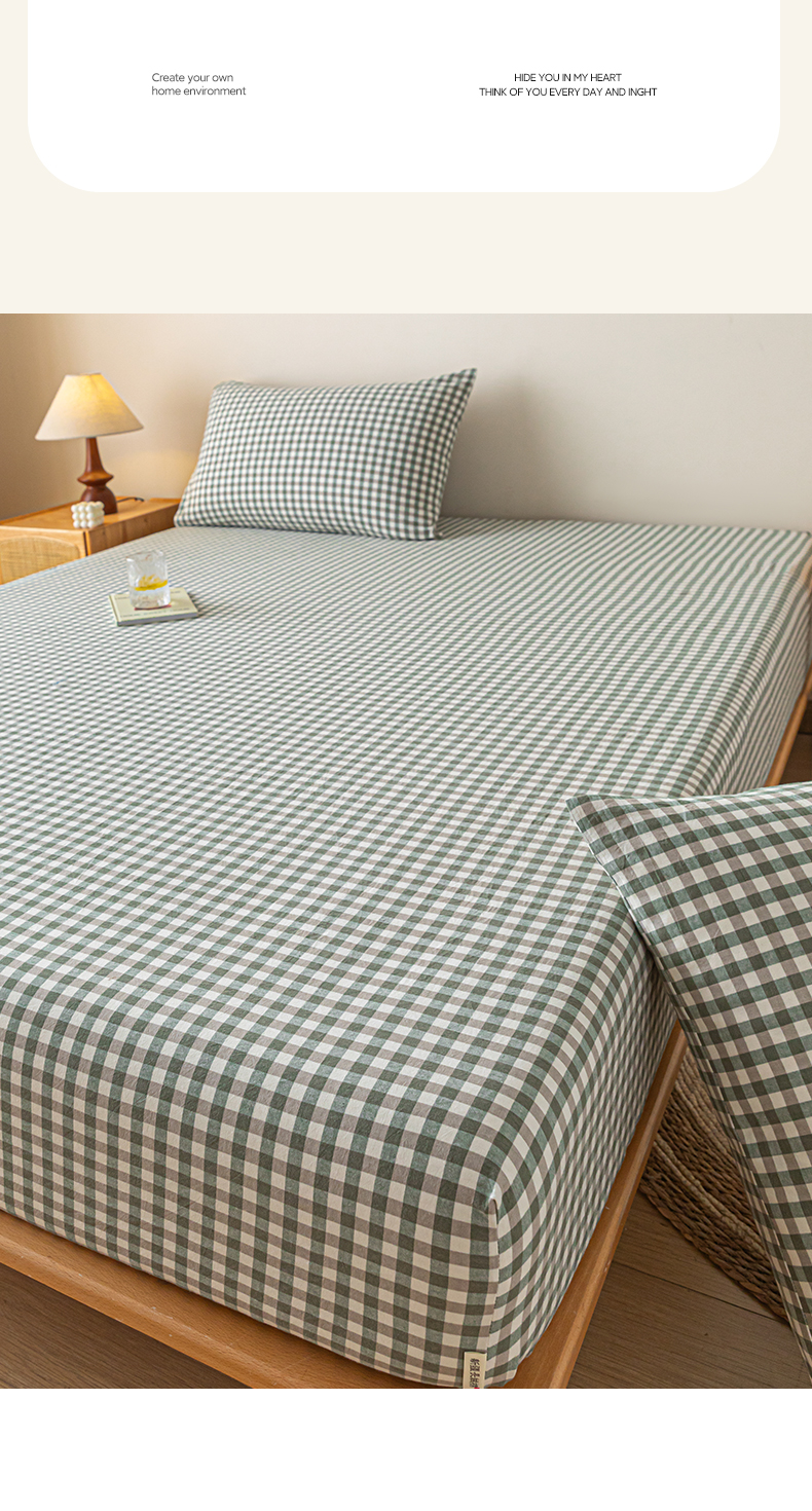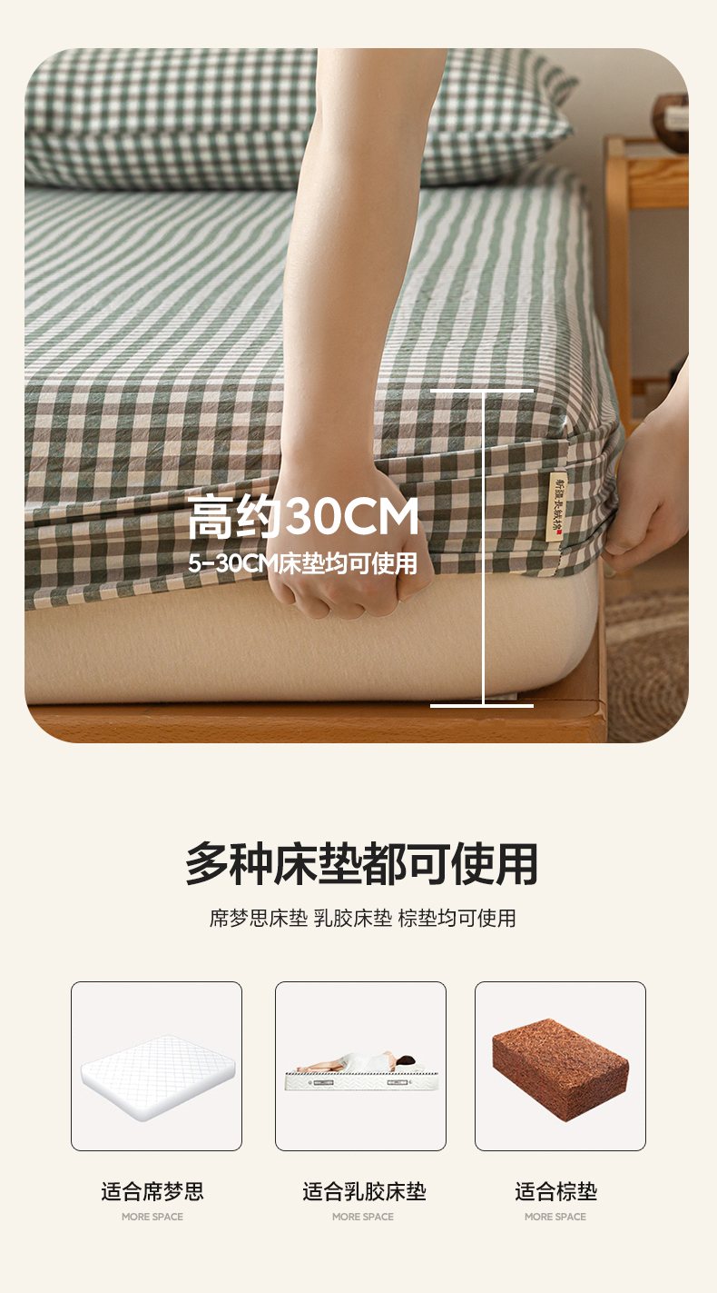 • 91家纺网 家纺一手货源 找家纺 卡伦家纺 2025全棉色织水洗棉单层床笠席梦思保护套 绿小格