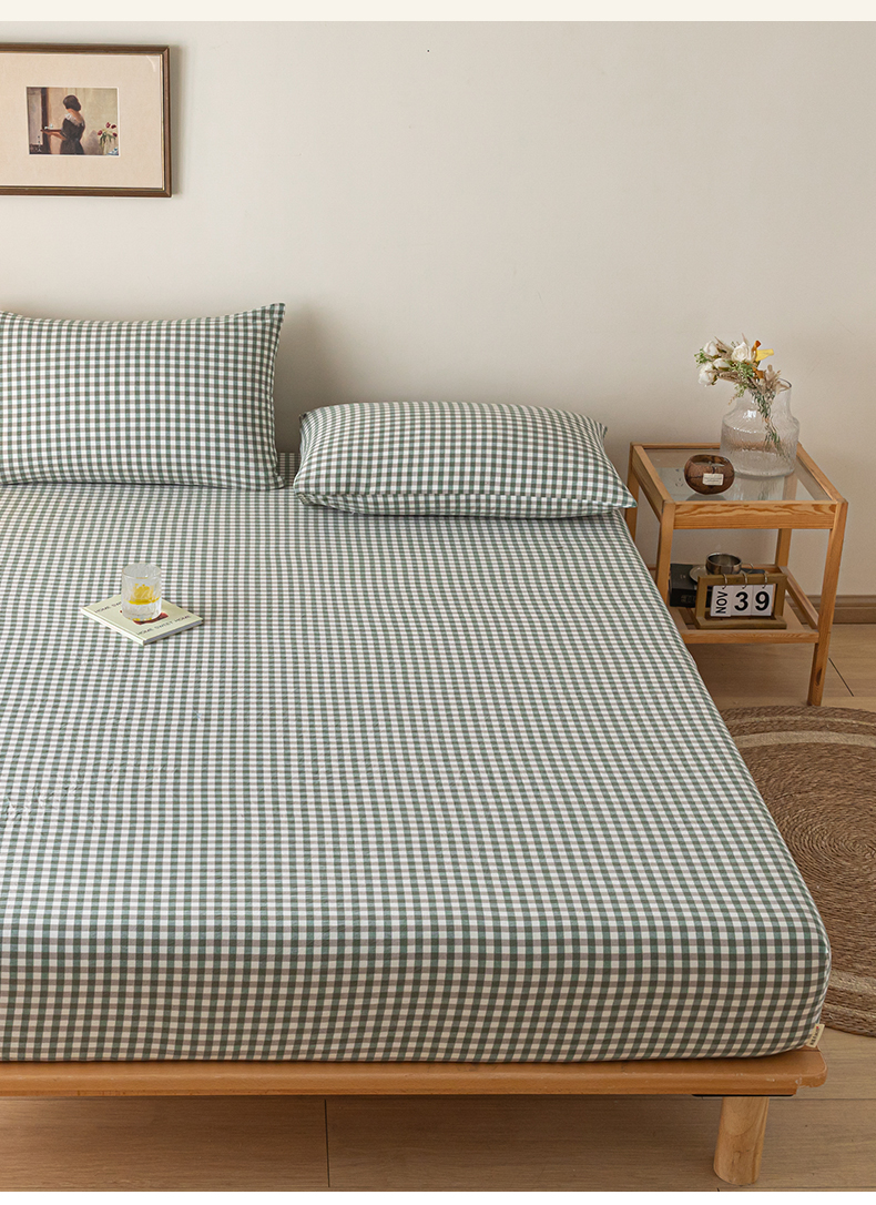 卡伦家纺 2025全棉色织水洗棉单层床笠席梦思保护套 绿小格