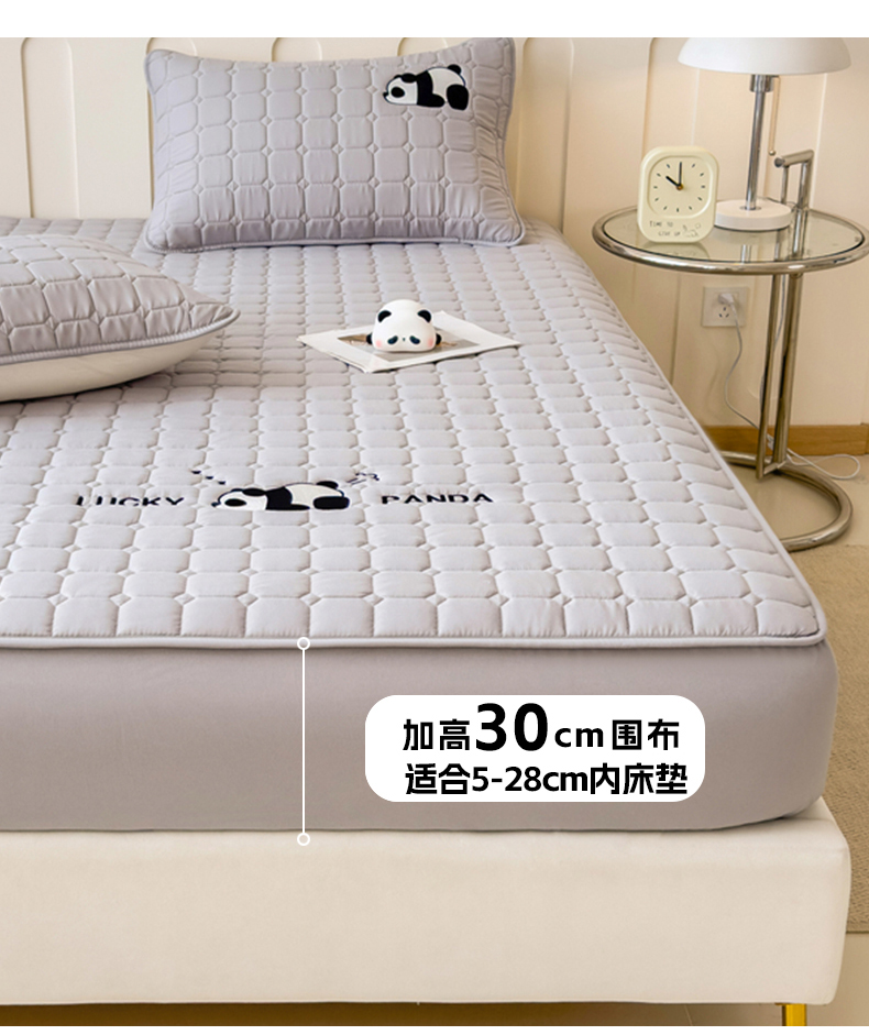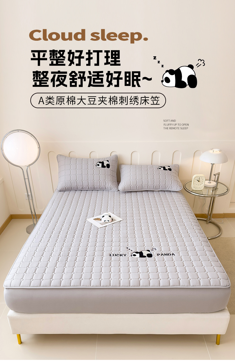 • 91家纺网 家纺一手货源 找家纺 2025新款A类大豆夹棉刺绣床笠系列-趴趴熊猫 趴趴熊猫-高级灰
