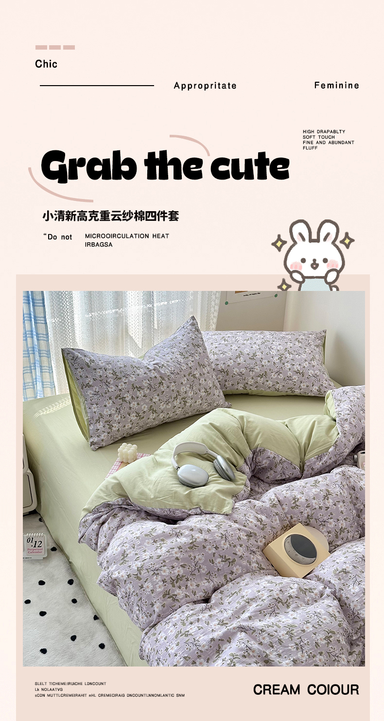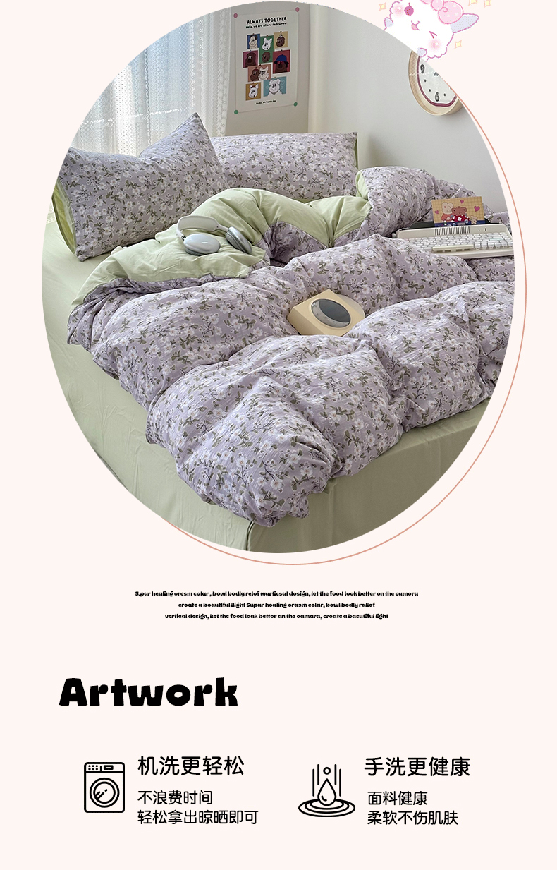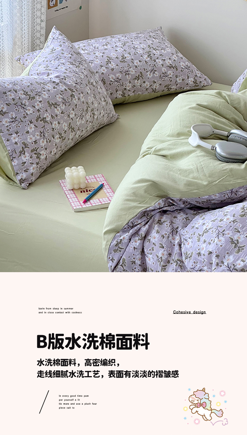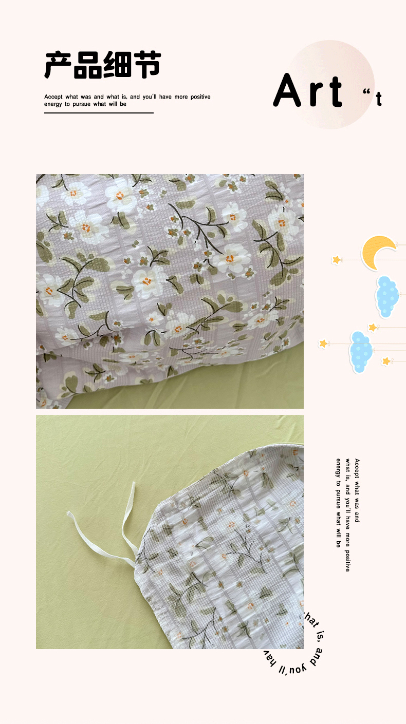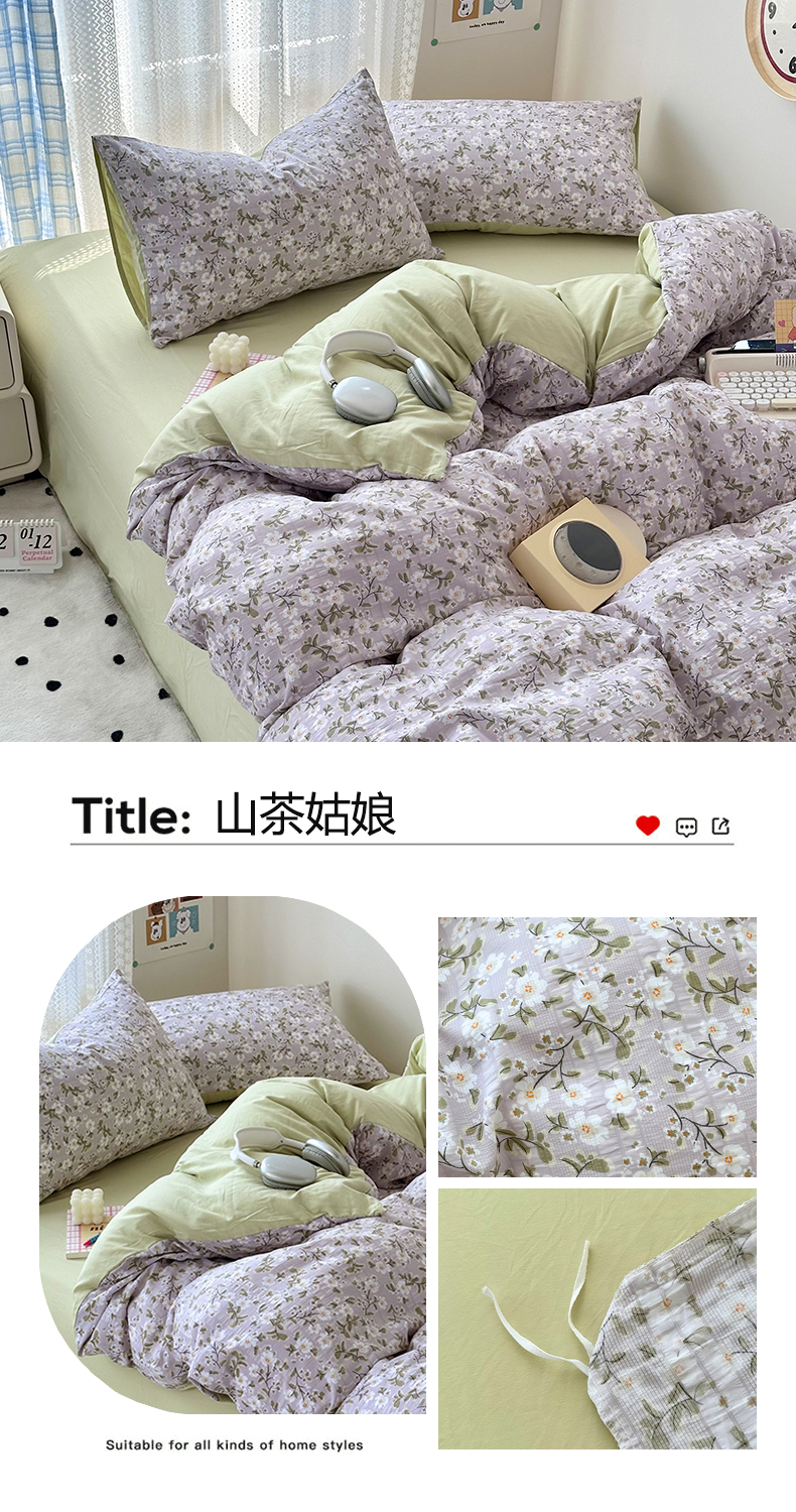 当前位置: 91家纺网 > 商品网购 > 床品套件 > 四件套 > 全棉普通四件套 > 希丞家居 2024新款小清新高克重提花水洗棉四件套(提供买家秀) 山茶姑娘