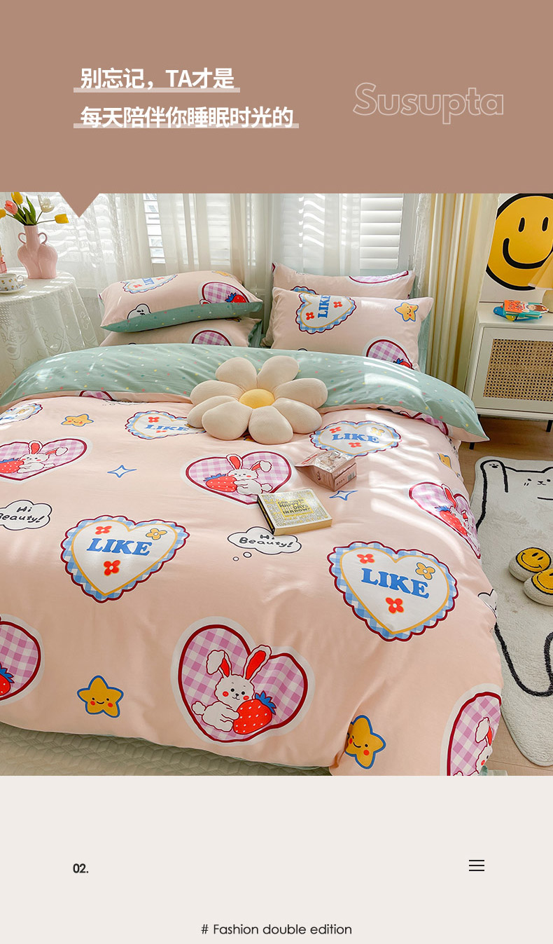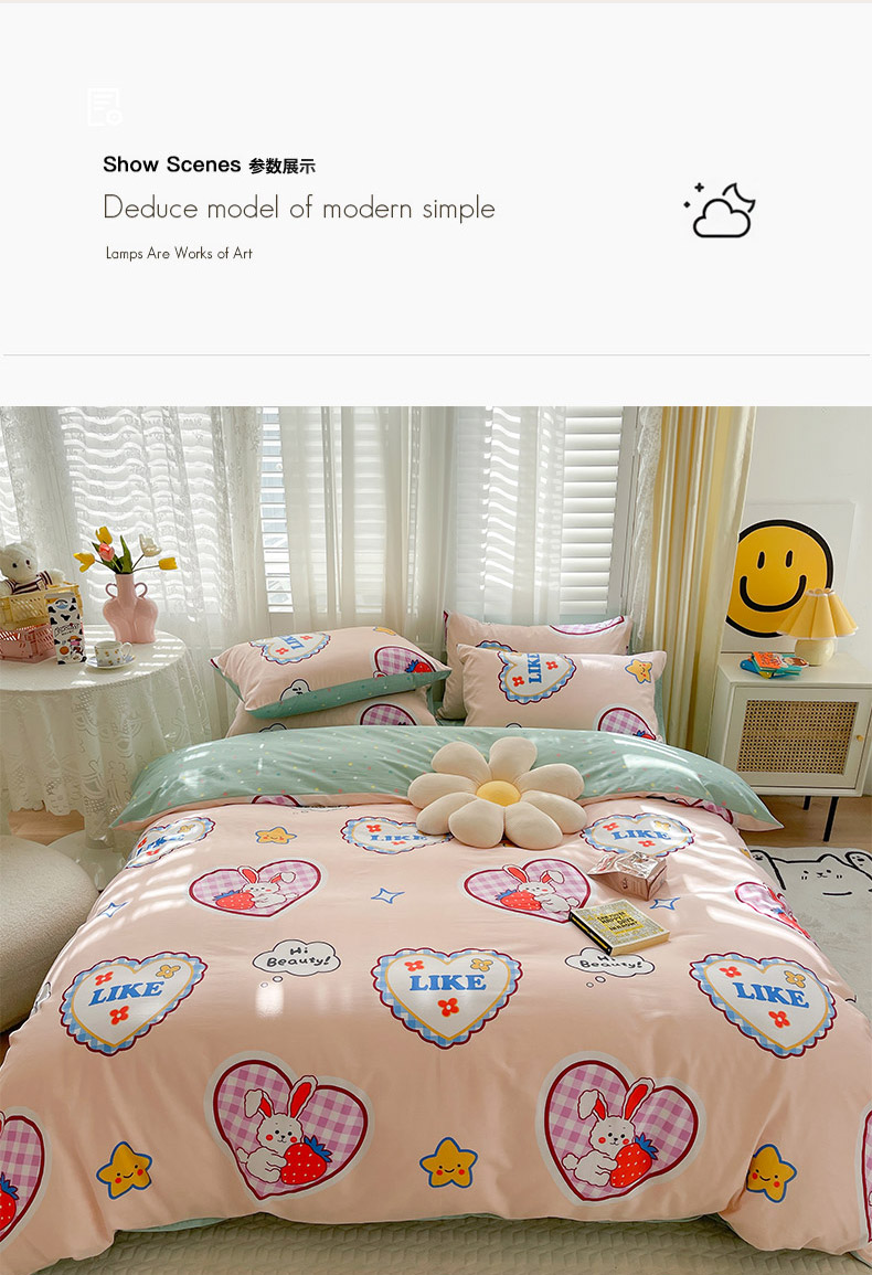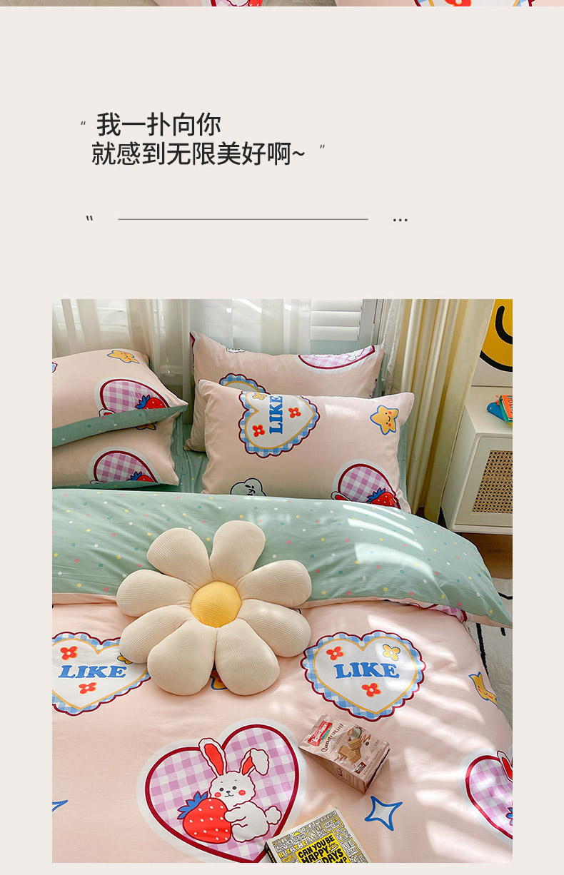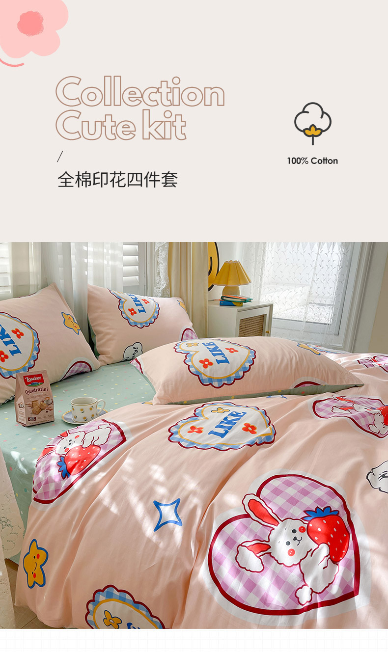 当前位置: 91家纺网 > 商品网购 > 床品套件 > 四件套 > 全棉普通四件套 > 798家纺 2025新款全棉水洗棉12868印花四件套 心动时刻