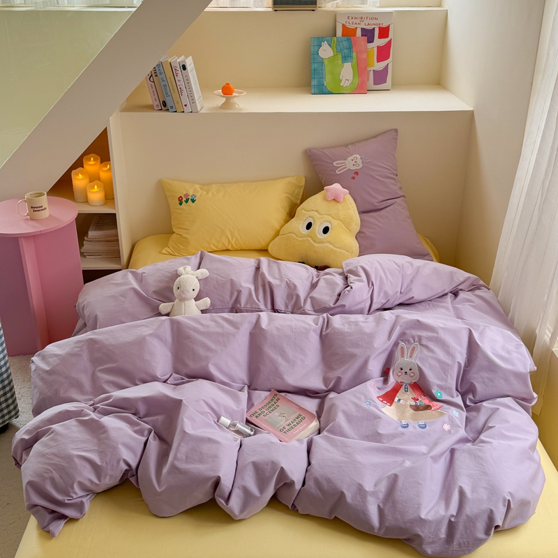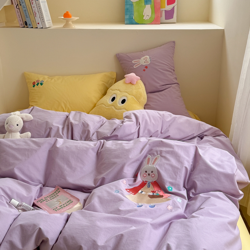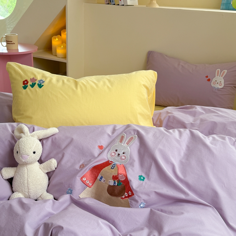 柚子YOUTH 2024新款全棉水洗棉撞色刺绣四件套 采花兔