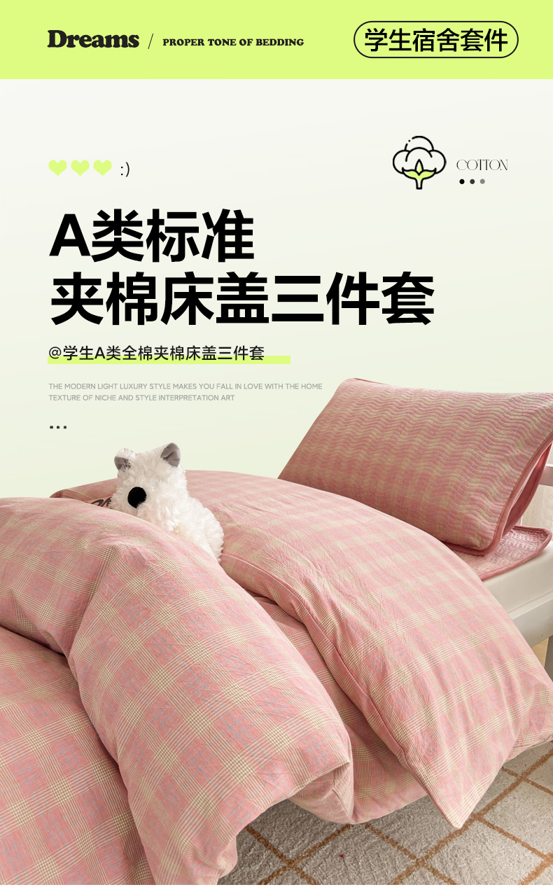 商品名称:沐纯家居 2024新款开学季(A类全棉水洗棉,棉加绒)床盖三件套 田园粉