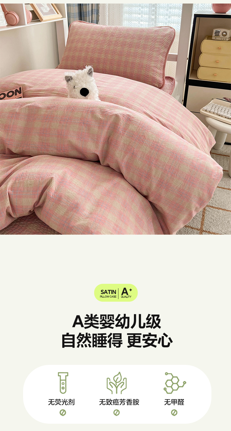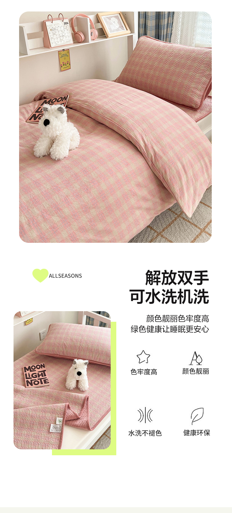 (总)沐纯家居 2025新款A类全棉纯棉色织水洗棉加婴儿绒双面可用床笠-暖绒系列,暖绒-黑白格,暖绒-卡其格,暖绒-柠檬粉,暖绒-柠檬蓝,暖绒-柠檬绿,组合图仅供参考不可下单